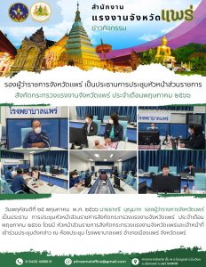 สรจ.แพร่ เป็นประธานการประชุมหัวหน้าส่วนราชการสังกัดกระทรวงแรงงานจังหวัดแพร่ ประจำเดือนพฤษภาคม ๒๕๖๖