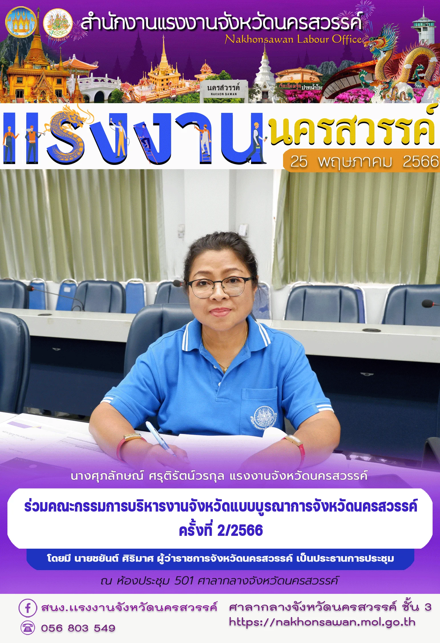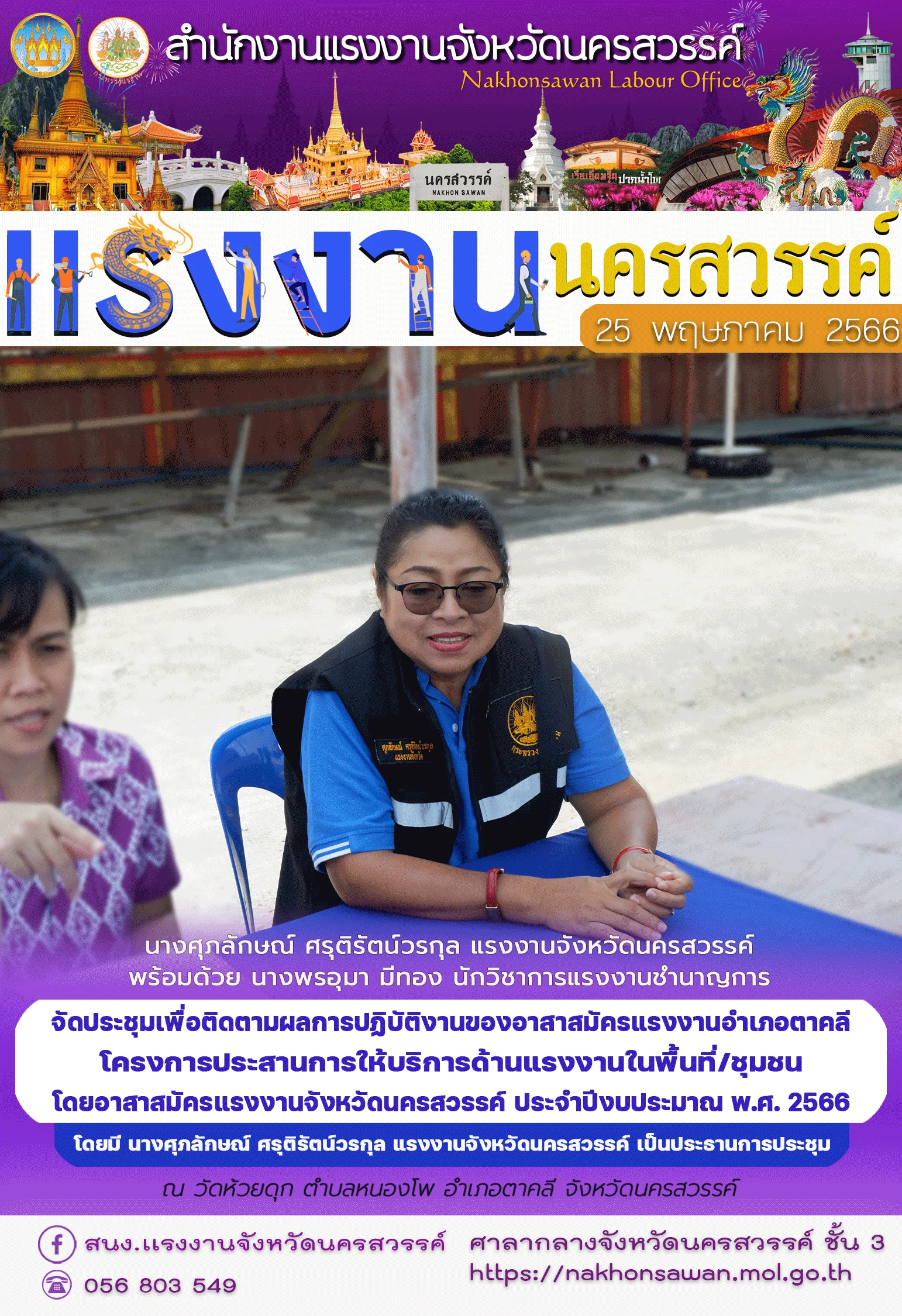 สรจ.นครสวรรค์ พร้อมด้วย จัดประชุมเพื่อติดตามผลการปฏิบัติงานของอาสาสมัครแรงงานอำเภอตาคลี โครงการประสานการให้บริการด้านแรงงานในพื้นที่/ชุมชน โดยอาสาสมัครแรงงานจังหวัดนครสวรรค์ ประจำปีงบประมาณ พ.ศ. 2566