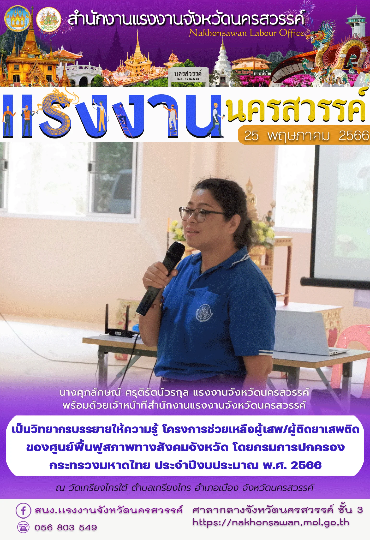 สรจ.นครสวรรค์ เป็นวิทยากรบรรยายให้ความรู้ โครงการช่วยเหลือผู้เสพ/ผู้ติดยาเสพติด ของศูนย์ฟื้นฟูสภาพทางสังคมจังหวัด โดยกรมการปกครอง กระทรวงมหาดไทย ประจำปีงบประมาณ พ.ศ. 2566 ณ วัดเกรียงไกรใต้ ตำบลเกรียงไกร อำเภอเมือง จังหวัดนครสวรรค์