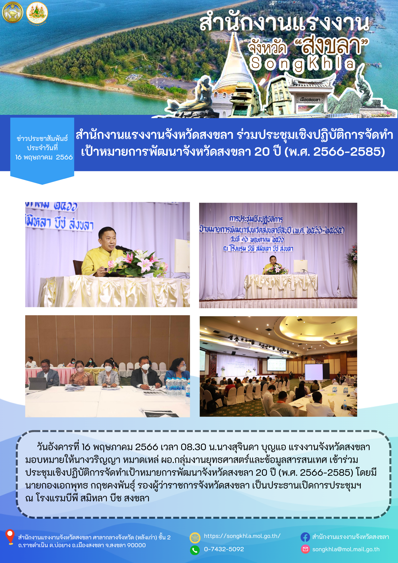 สรจ.สงขลา ร่วมประชุมเชิงปฏิบัติการจัดทำเป้าหมายการพัฒนาจังหวัดสงขลา 20 ปี (พ.ศ. 2566-2585)