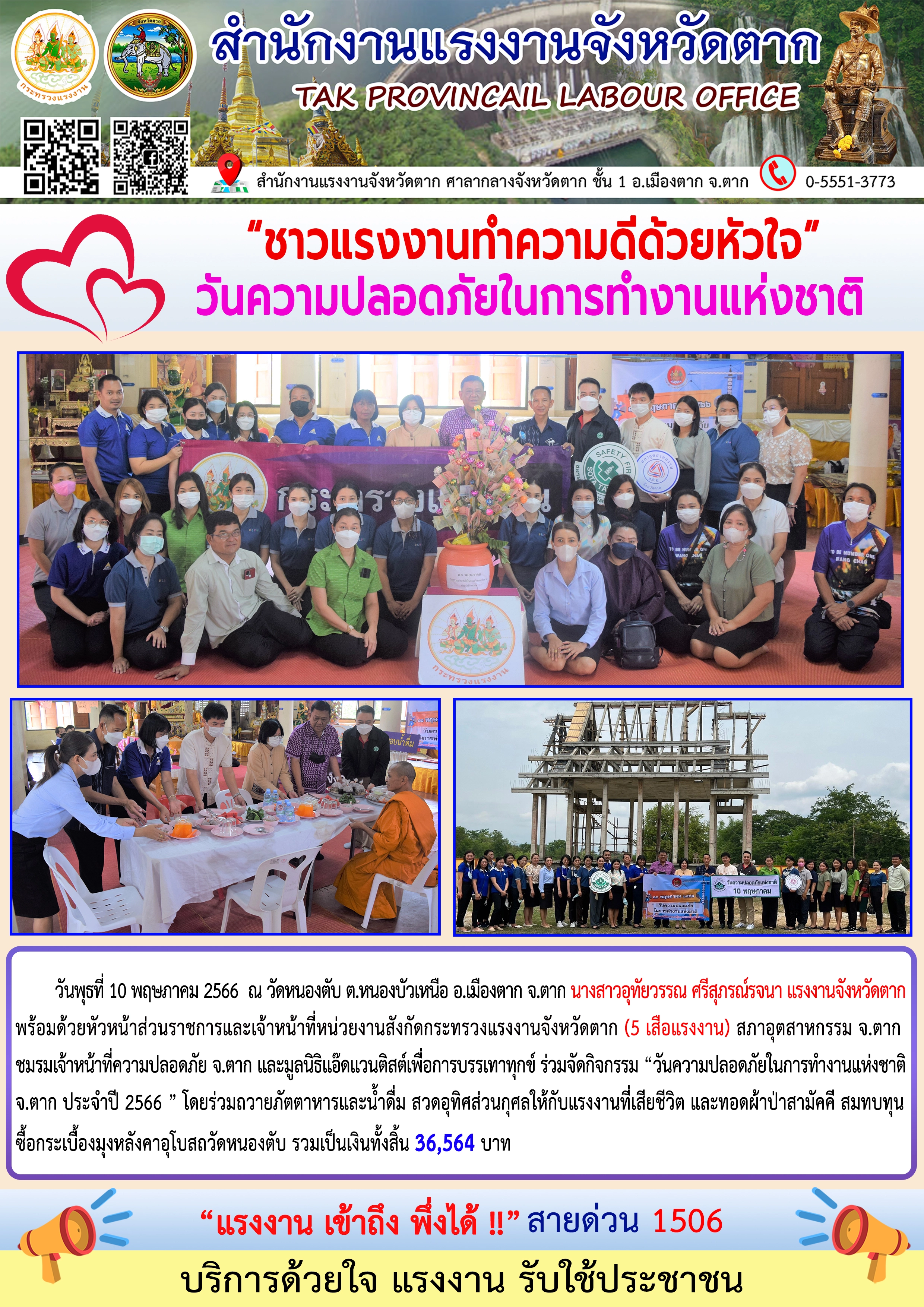 สรจ.ตาก“ชาวแรงงานทำความดีด้วยหัวใจ” วันความปลอดภัยในการทำงานแห่งชาติ