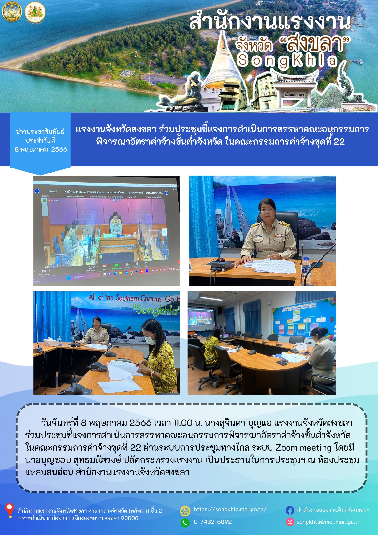 แรงงานจังหวัดสงขลา ร่วมประชุมชี้แจงการดำเนินการสรรหาคณะอนุกรรมการพิจารณาอัตราค่าจ้างขั้นต่ำจังหวัด ในคณะกรรมการค่าจ้างชุดที่ 22