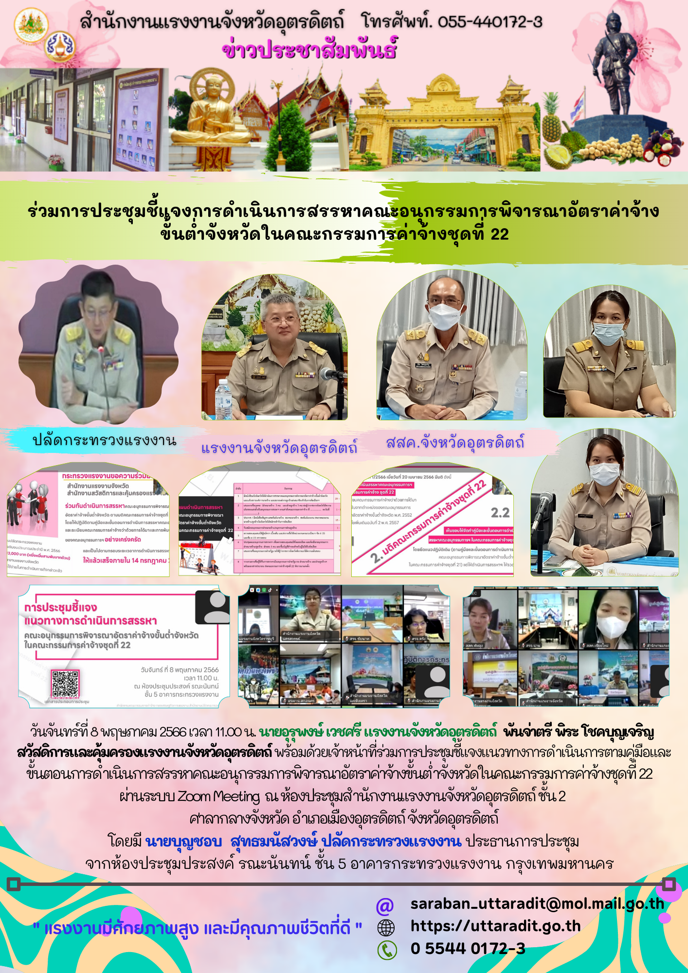 สรจ.อต. ร่วมการประชุมชี้แจงแนวทางการดำเนินการตามคู่มือและ ขั้นตอนการดำเนินการสรรหาคณะอนุกรรมการพิจารณาอัตราค่าจ้างขั้นต่ำจังหวัดในคณะกรรมการค่าจ้างชุดที่ 22