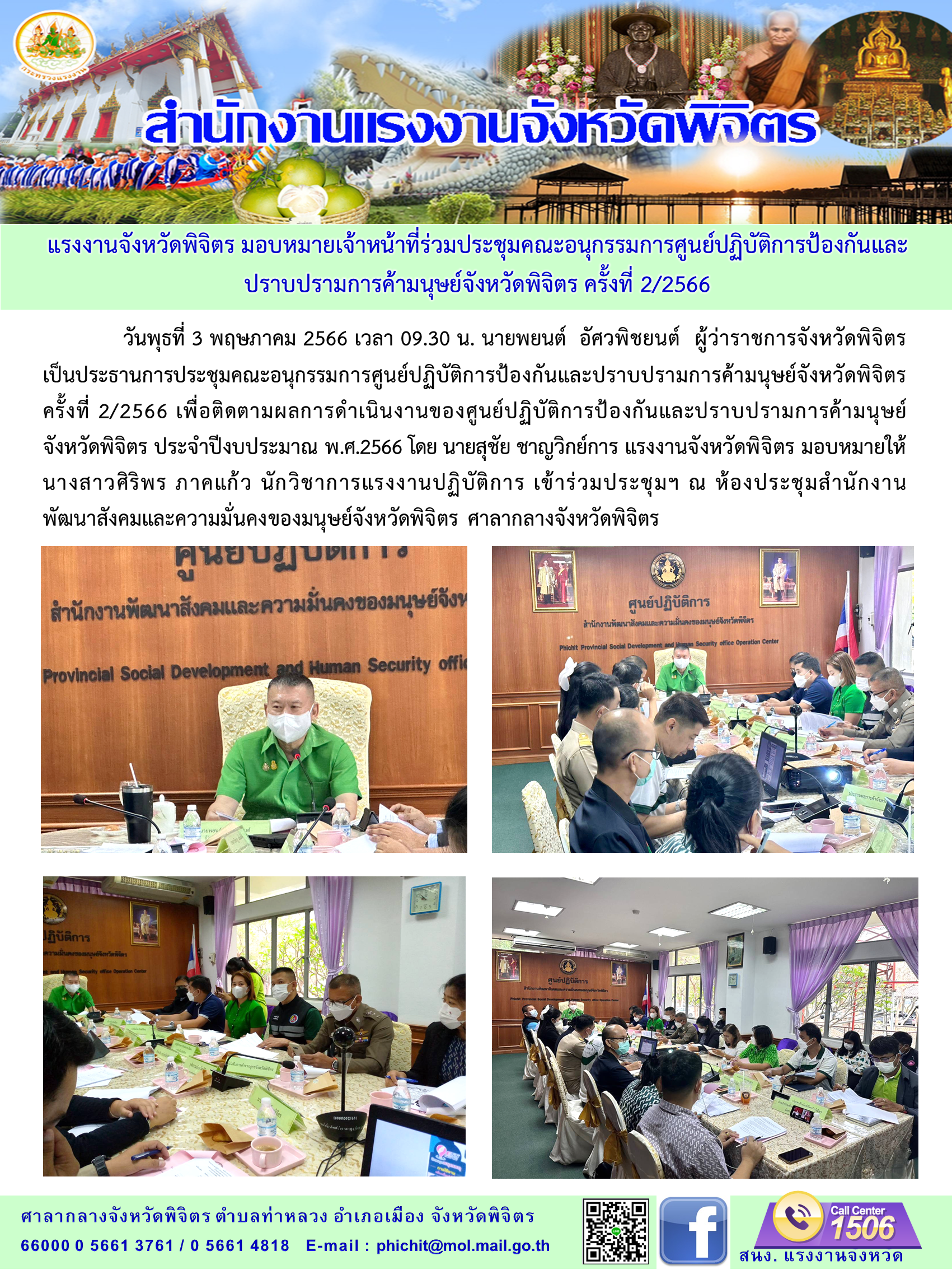 สรจ.พิจิตร ร่วมประชุมคณะอนุกรรมการศูนย์ปฏิบัติการป้องกันและปราบปรามการค้ามนุษย์จังหวัดพิจิตร ครั้งที่ 2/2566