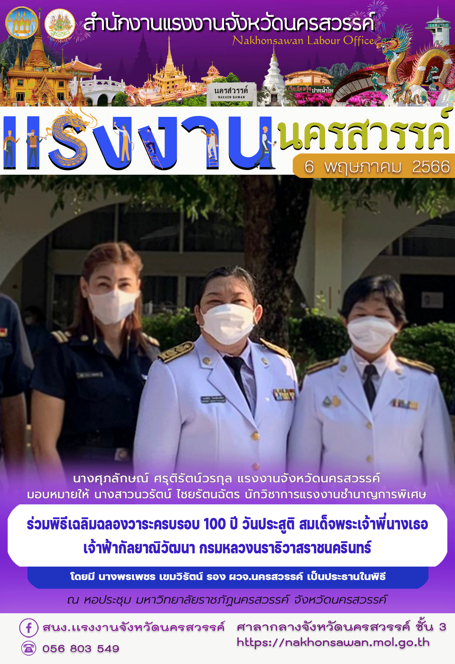 สรจ.นครสวรรค์ ร่วมพิธีเฉลิมฉลองวาระครบรอบ 100 ปี วันประสูติ สมเด็จพระเจ้าพี่นางเธอ เจ้าฟ้ากัลยาณิวัฒนา กรมหลวงนราธิวาสราชนครินทร์
