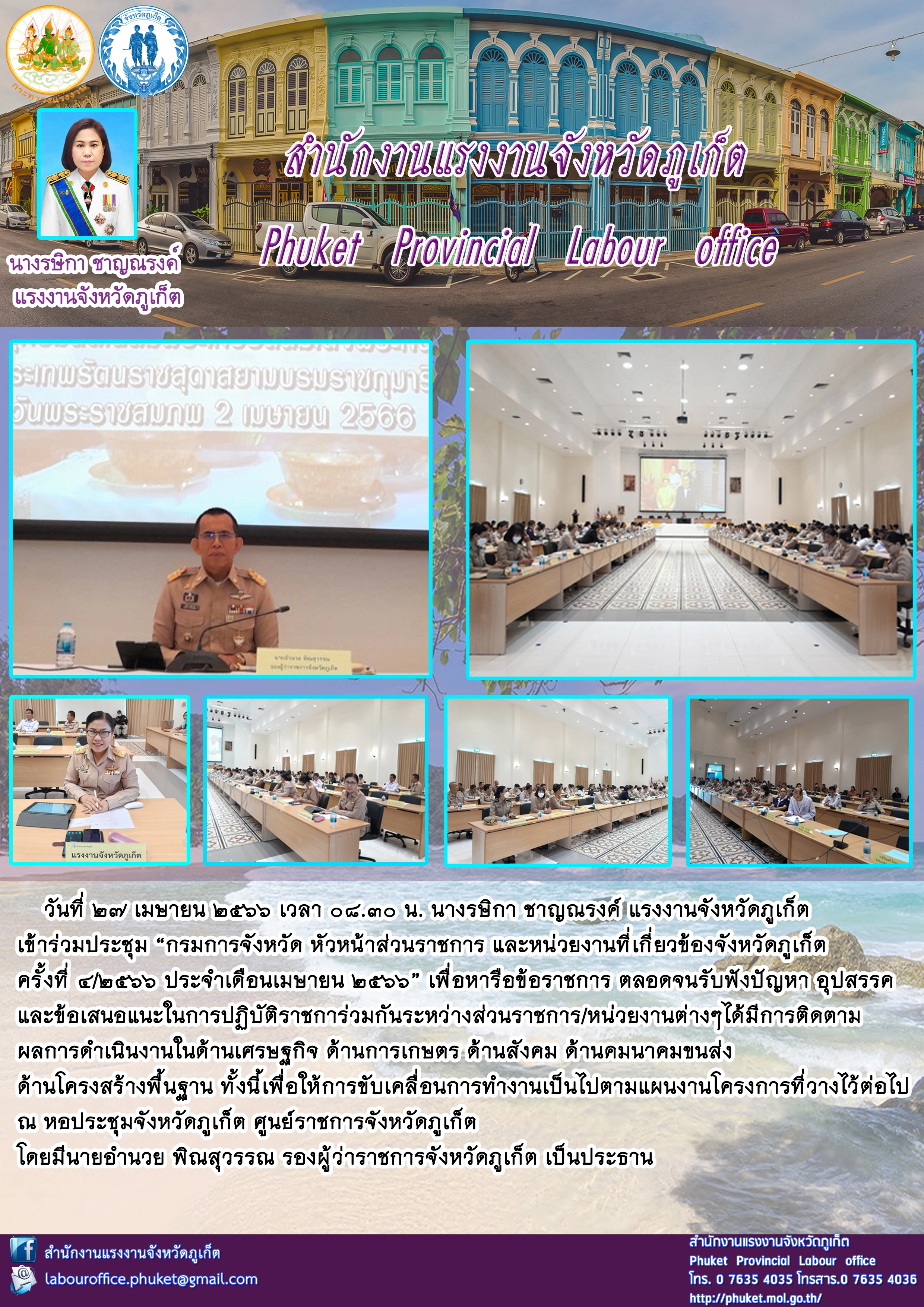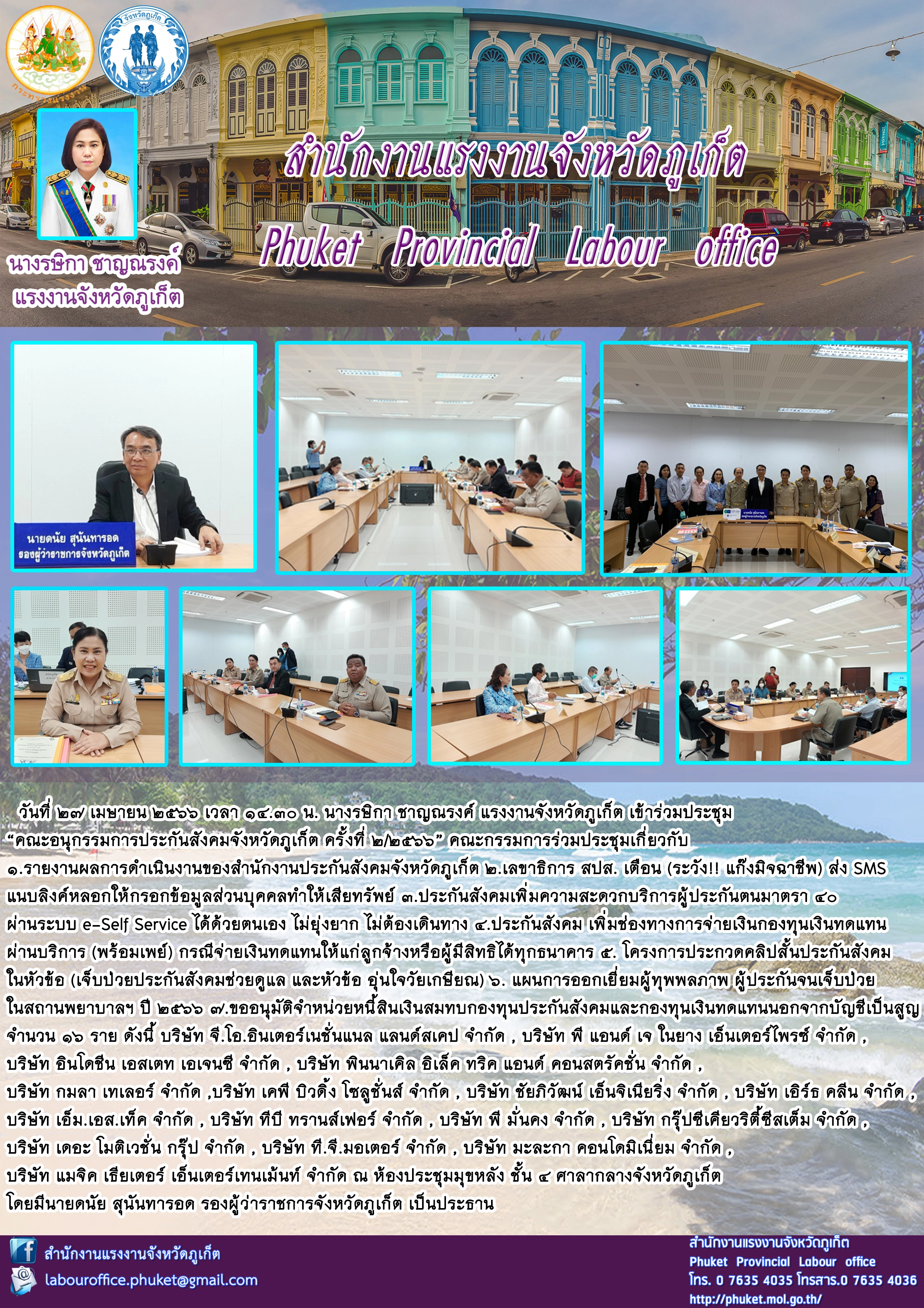 สรจ.ภูเก็ต เข้าร่วมประชุม “คณะอนุกรรมการประกันสังคมจังหวัดภูเก็ต ครั้งที่ 2/2566”