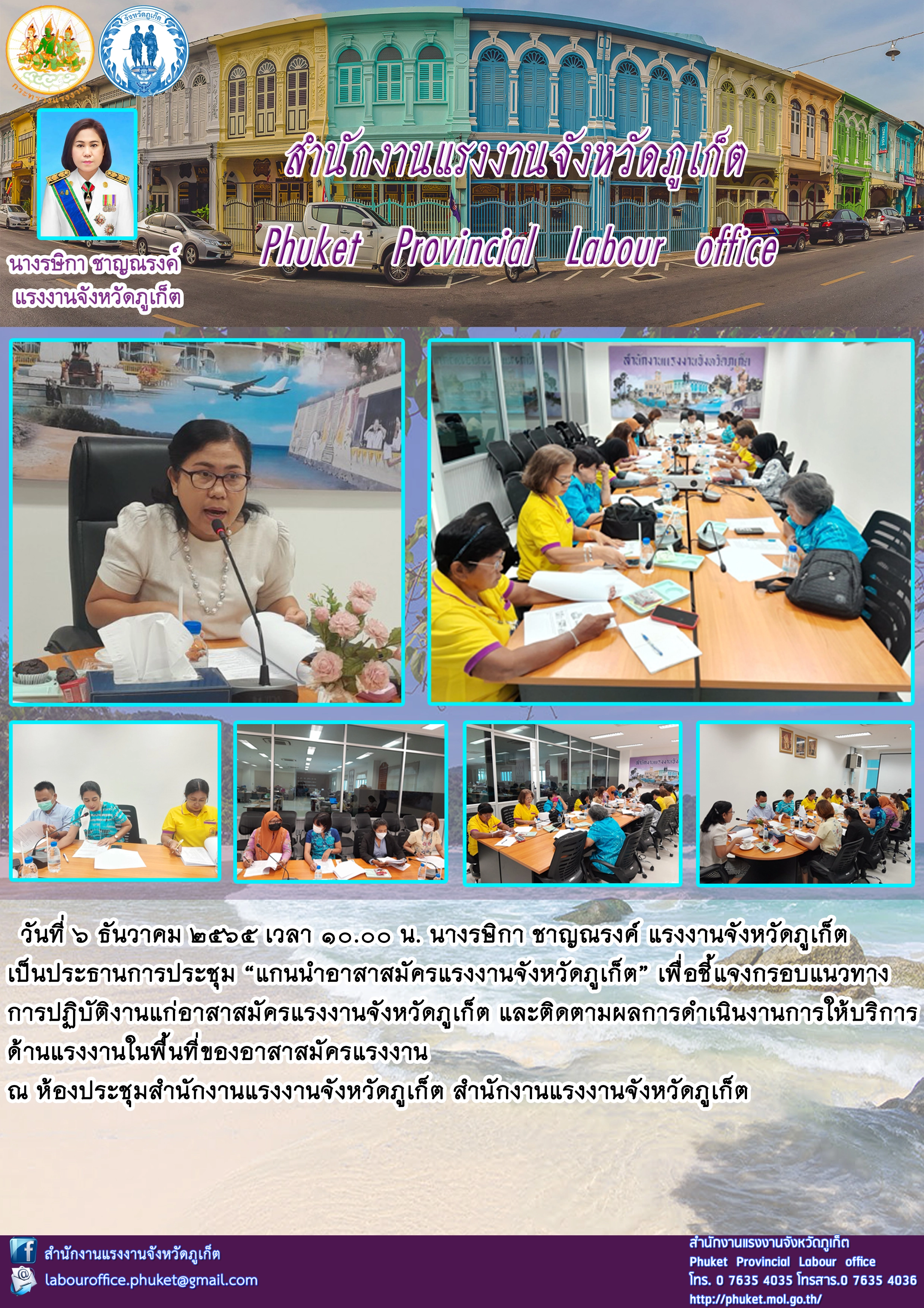 สรจ.ภูเก็ต เป็นประธานการประชุม “แกนนำอาสาสมัครแรงงานจังหวัดภูเก็ต”
