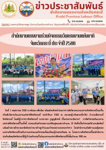 สำนักงานแรงงานร่วมกิจกรรมวันแรงงานแห่งชาติจังหวัดกระบี่ ประจำปี 2566