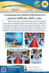 สรจ.ตรัง ร่วมการประชุมคณะกรมการจังหวัด หัวหน้าส่วนราชการและหน่วยงานที่เกี่ยวข้อง ครั้งที่ 4 ประจำปี 2566 ประจำเดือนเมษายน 2566