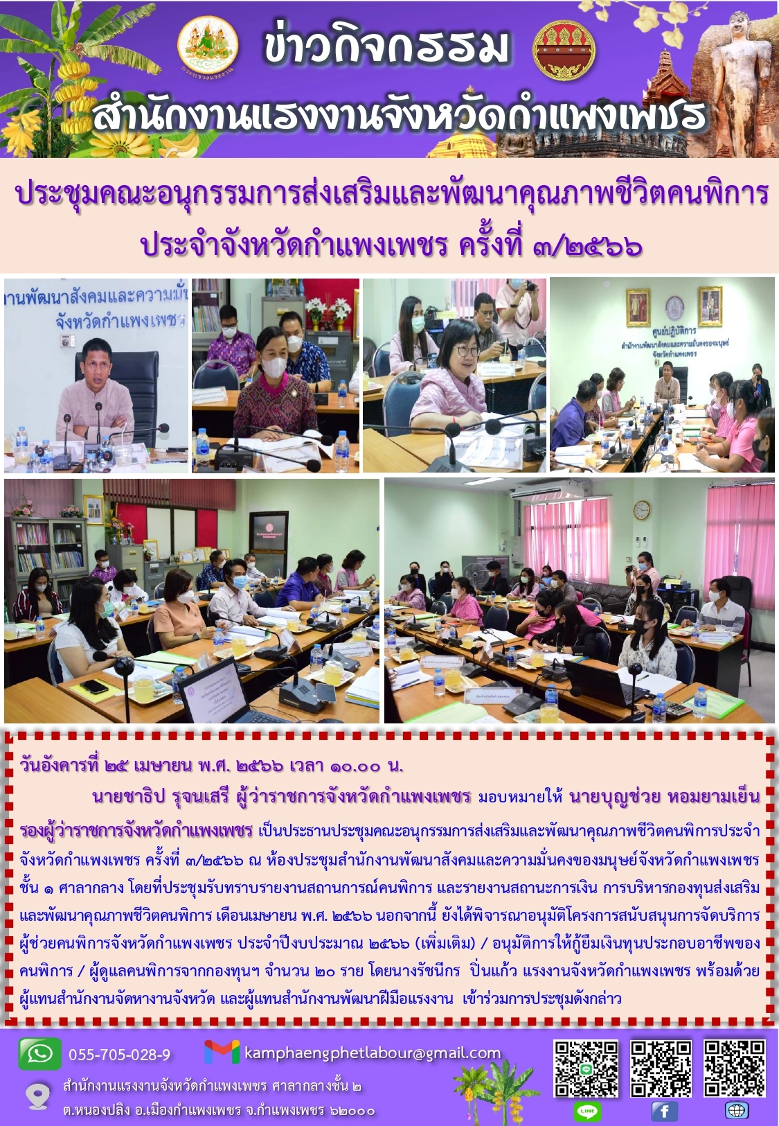 ประชุมคณะอนุกรรมการส่งเสริมและพัฒนาคุณภาพชีวิตคนพิการประจำจังหวัดกำแพงเพชร ครั้งที่ 3/2566