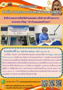 สำนักงานแรงงานจังหวัดกำแพงเพชร แจ้งข่าวสารด้านแรงงานทางรายการวิทยุ “ข่าวกำแพงเพชรบ้านเรา”