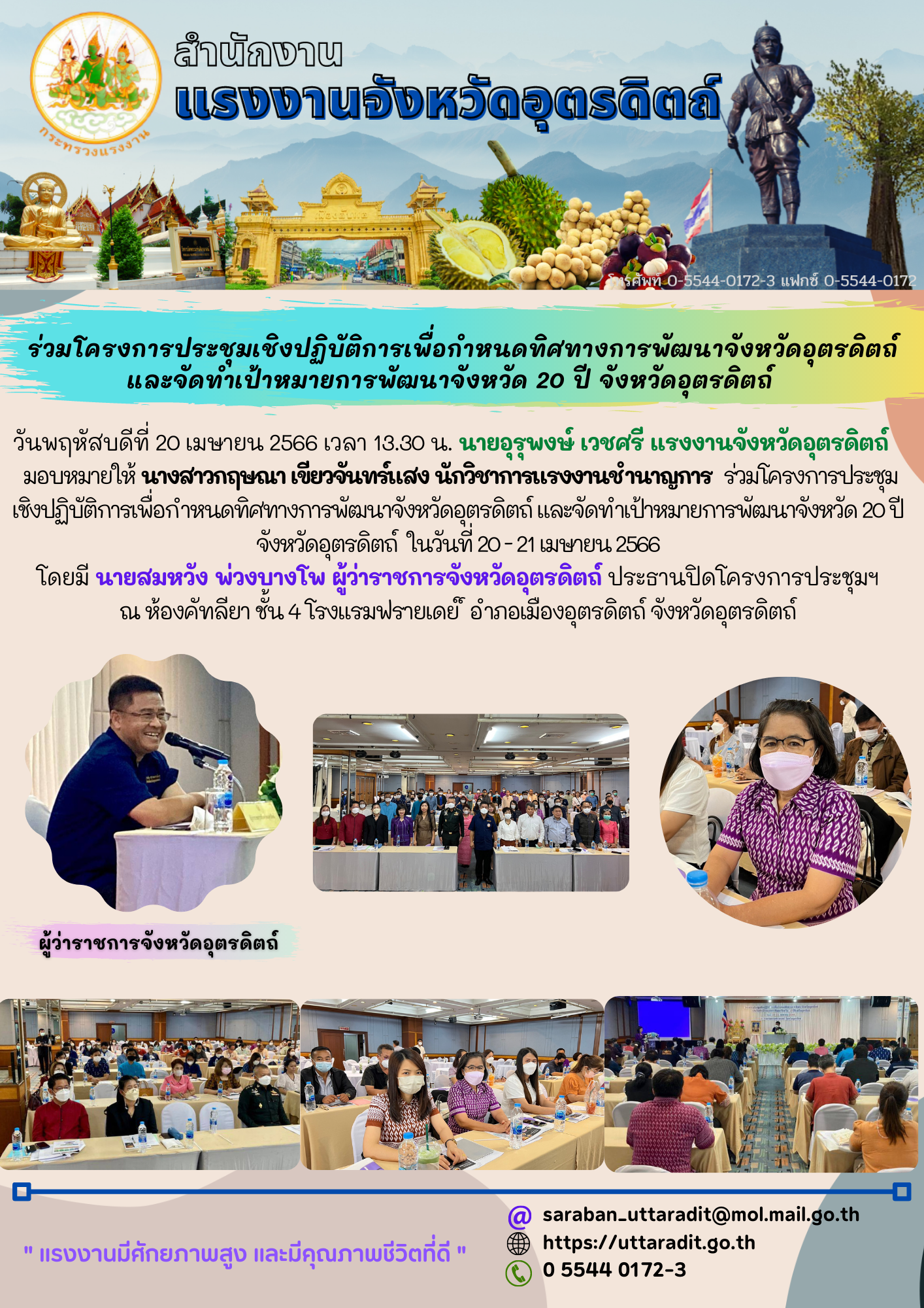 สรจ.อต. ร่วมโครงการประชุมเชิงปฏิบัติการเพื่อกำหนดทิศทางการพัฒนาจังหวัดอุตรดิตถ์ และจัดทำเป้าหมายการพัฒนาจังหวัด 20 ปี จังหวัดอุตรดิตถ์