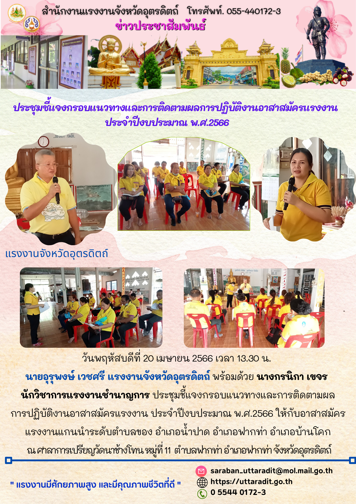 สรจ.อต. ประชุมชี้แจงกรอบแนวทางและการติดตามผลการปฏิบัติงานอาสาสมัครแรงงาน ประจำปีงบประมาณ พ.ศ.2566