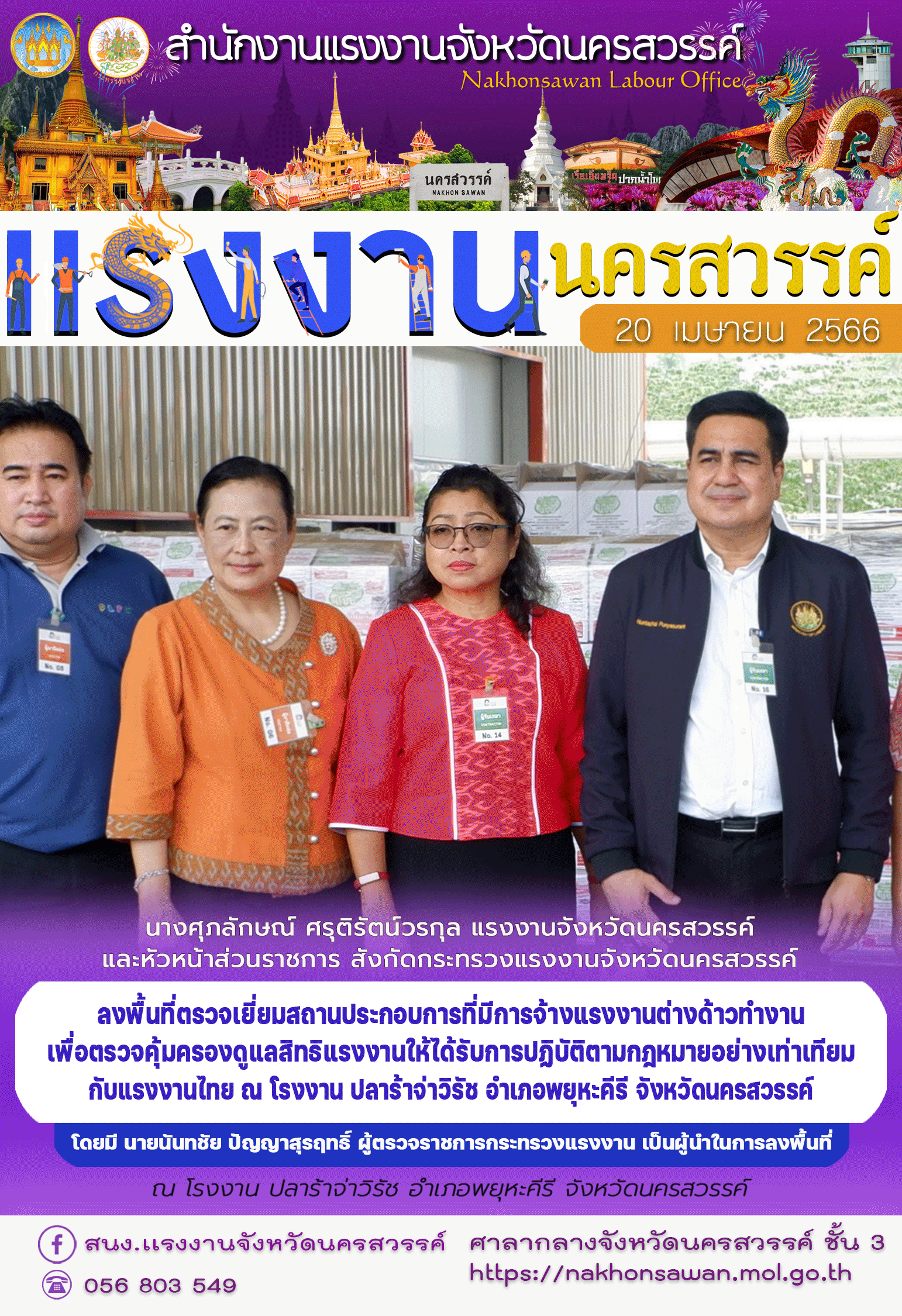 สรจ.นครสวรรค์ ลงพื้นที่ตรวจเยี่ยมสถานประกอบการที่มีการจ้างแรงงานต่างด้าวทำงาน เพื่อตรวจคุ้มครองดูแลสิทธิแรงงานให้ได้รับการปฏิบัติตามกฎหมายอย่างเท่าเทียม กับแรงงานไทย ณ โรงงาน ปลาร้าจ่าวิรัช
