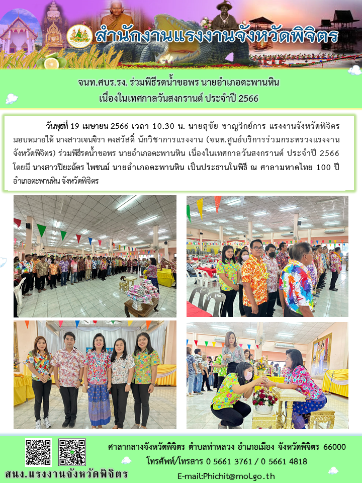 จนท.ศบร.ร่วมพิธีรดน้ำขอพร นายอำเภอตะพานหิน เนื่องในเทศกาลวันสงกรานต์ ประจำปี 2566