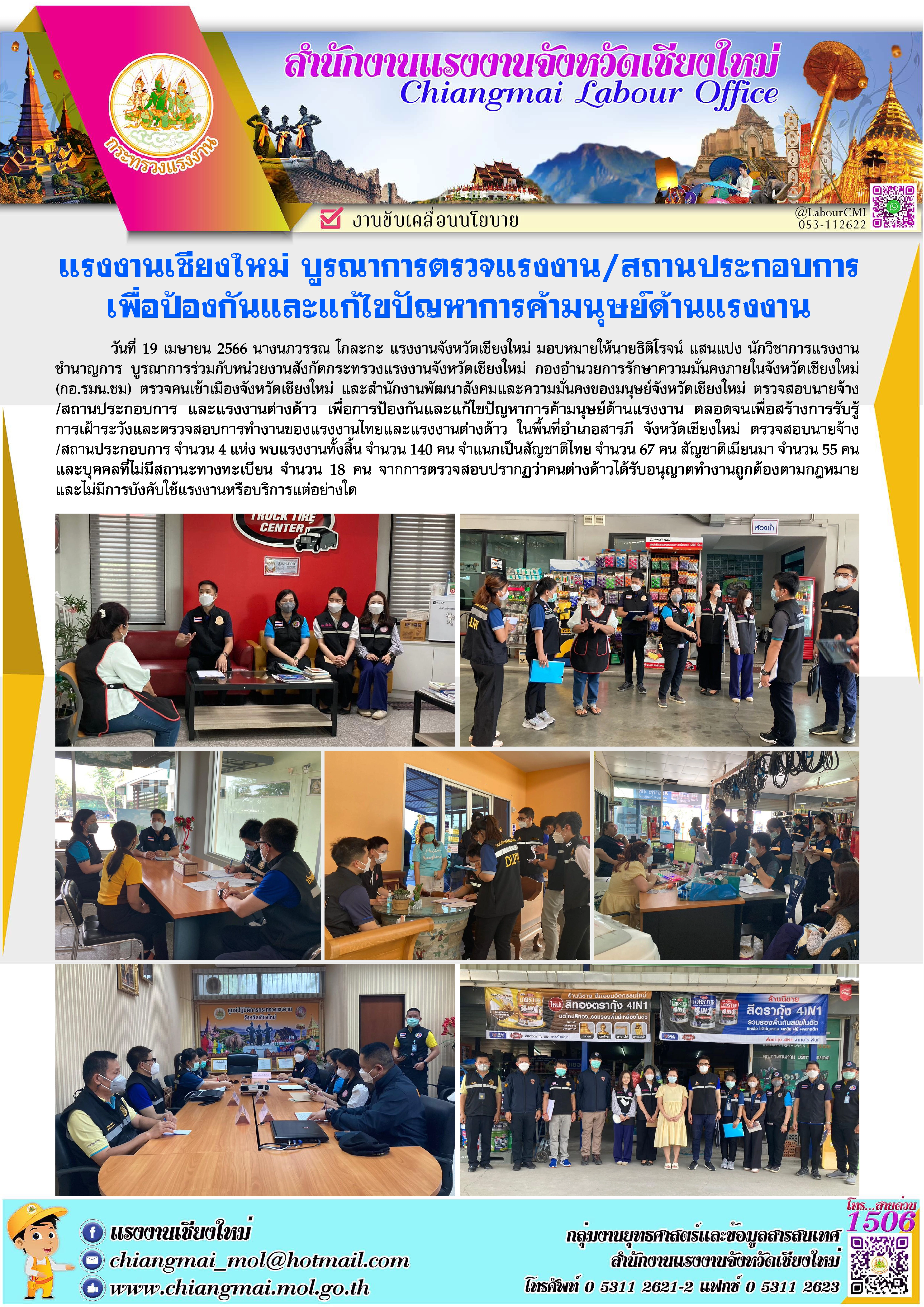 สรจ.เชียงใหม่ บูรณาการตรวจแรงงาน สถานประกอบการเพื่อป้องกันและแก้ไขการค้ามนุษย์ด้านแรงงาน
