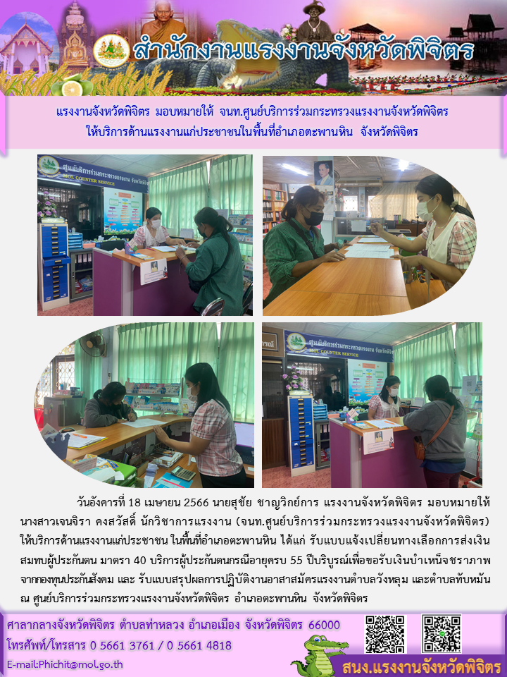 เจ้าหน้าที่ศูนย์บริการร่วมกระทรวงแรงงานจังหวัดพิจิตร ให้บริการด้านแรงงานแก่ประชาชน