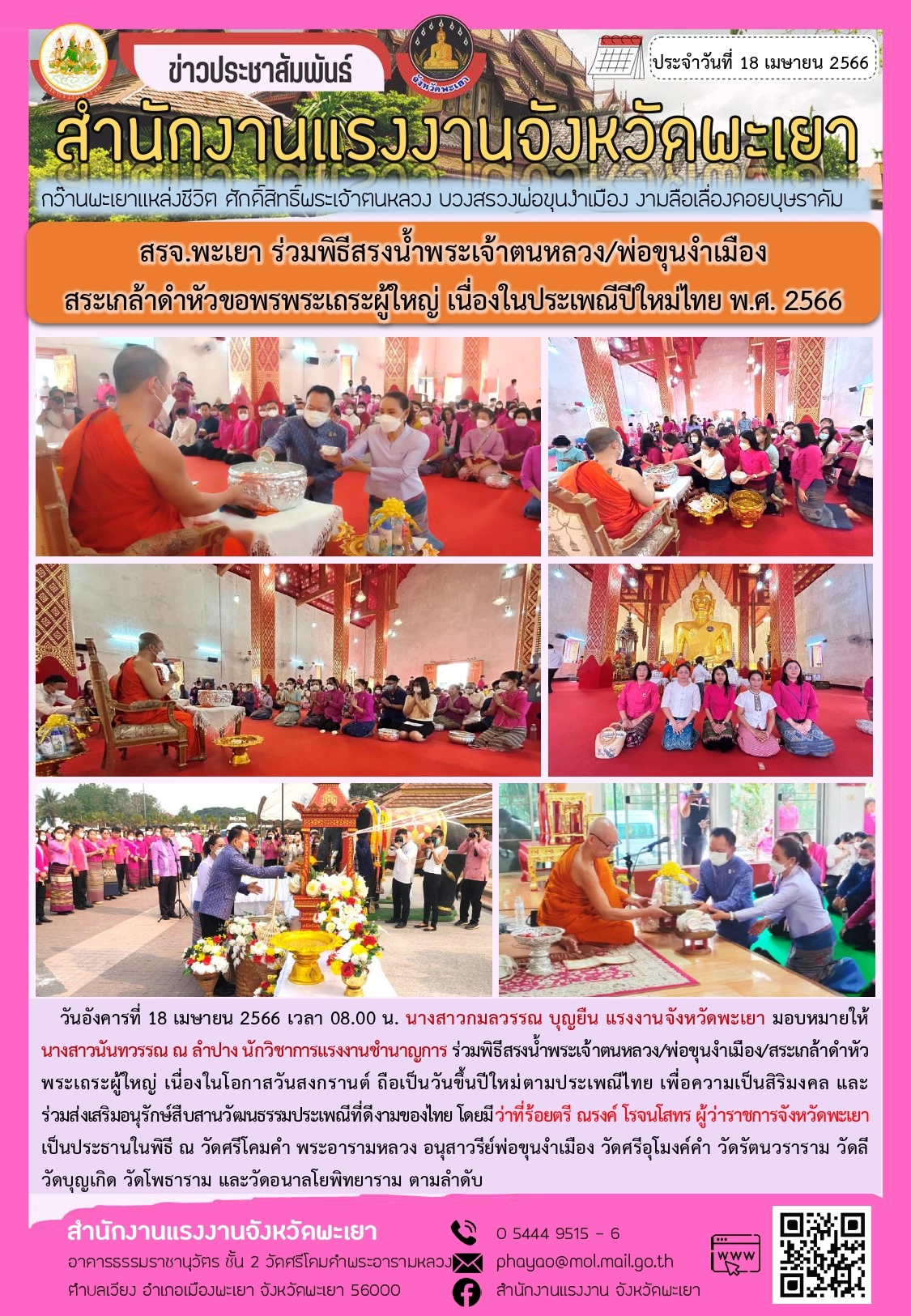 สรจ.พะเยา ร่วมพิธีสรงน้ำพระเจ้าตนหลวง/พ่อขุนงำเมือง/สระเกล้าดำหัวขอพรพระเถระผู้ใหญ่ เนื่องในประเพณีปีใหม่ไทย พ.ศ. 2566