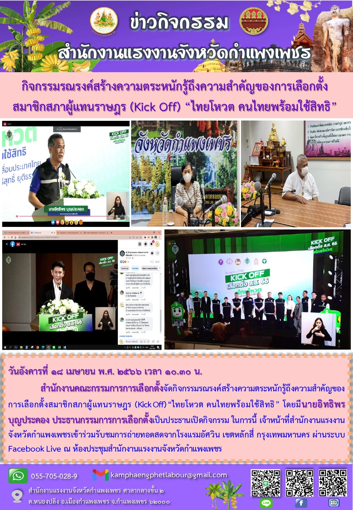 สรจ.กำแพงเพชร กิจกรรมรณรงค์สร้างความตระหนักรู้ถึงความสำคัญของการเลือกตั้งสมาชิกสภาผู้แทนราษฎร (Kick Off) “ไทยโหวต คนไทยพร้อมใช้สิทธิ”