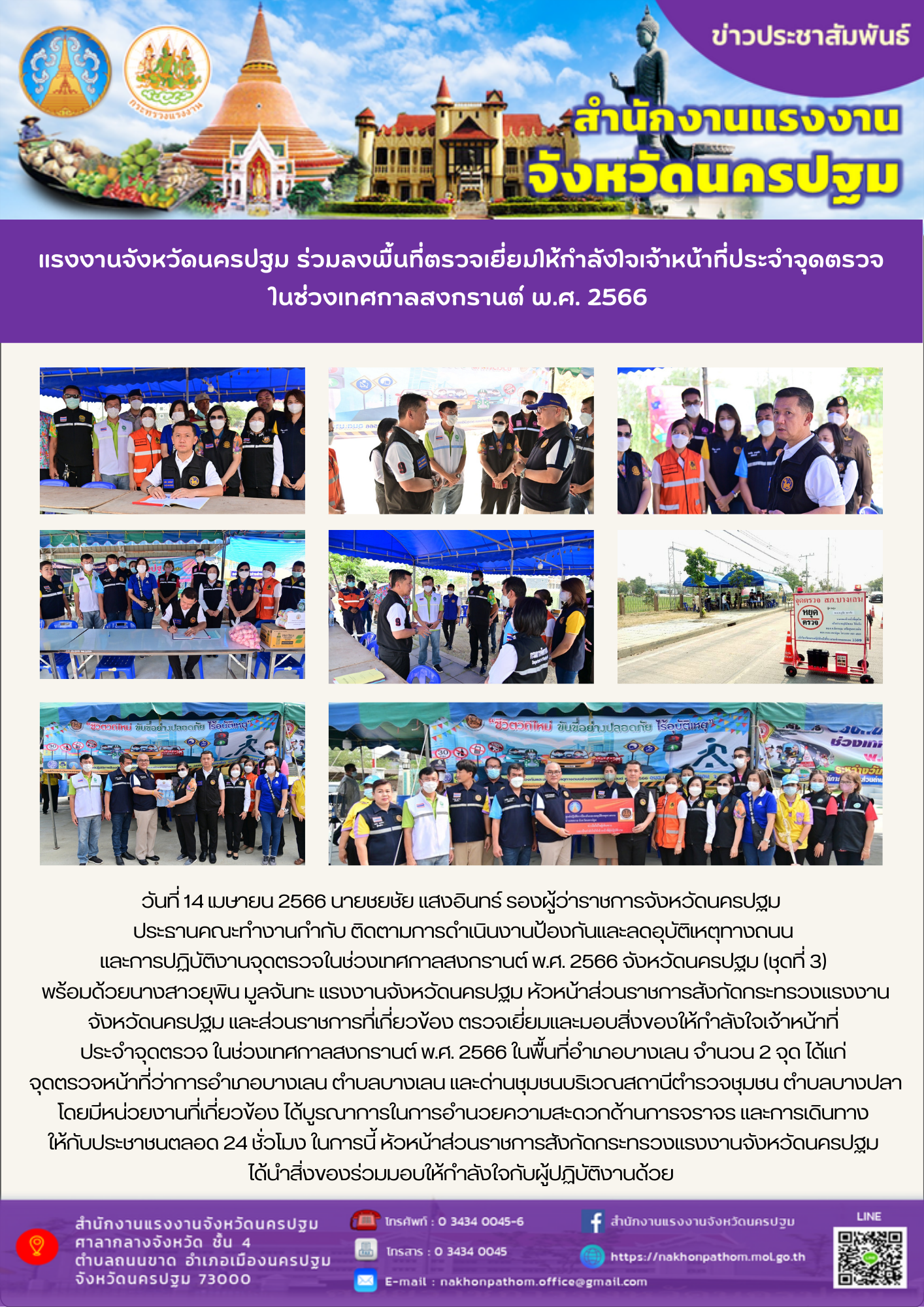 สรจ.นครปฐม ร่วมลงพื้นที่ตรวจเยี่ยมให้กำลังใจเจ้าหน้าที่ประจำจุดตรวจ ในช่วงเทศกาลสงกรานต์ พ.ศ. 2566