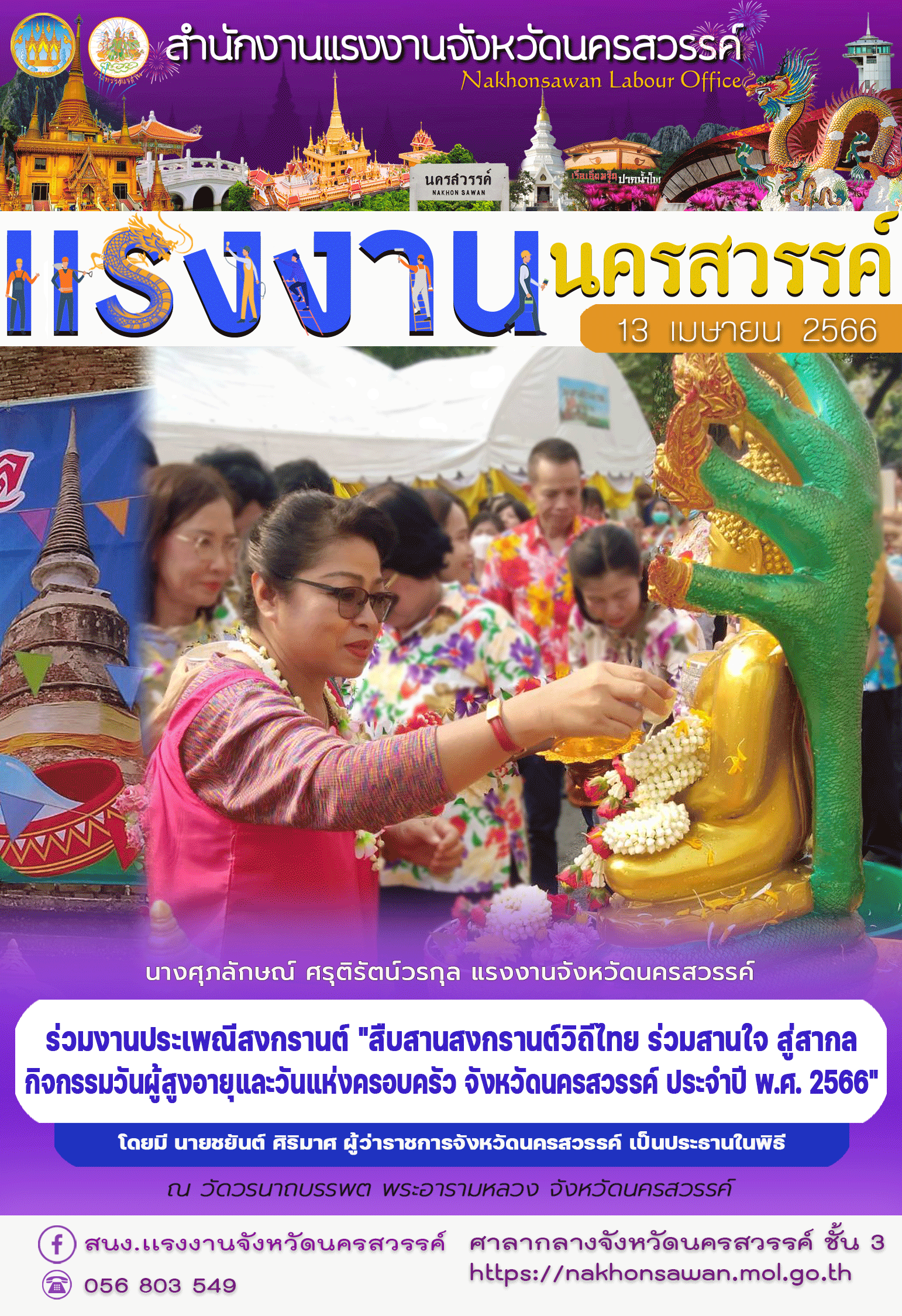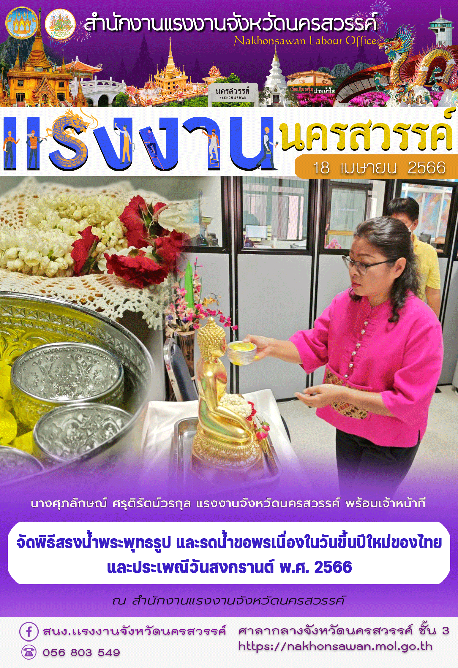 สรจ.นครสวรรค์ จัดพิธีสรงน้ำพระพุทธรูป และรดน้ำขอพรเนื่องในวันขึ้นปีใหม่ของไทย และประเพณีวันสงกรานต์ พ.ศ. 2566