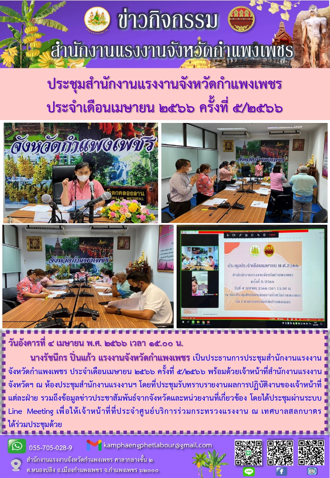 ประชุมสำนักงานแรงงานจังหวัดกำแพงเพชร ประจำเดือนเมษายน 2566 ครั้งที่ 5/2566