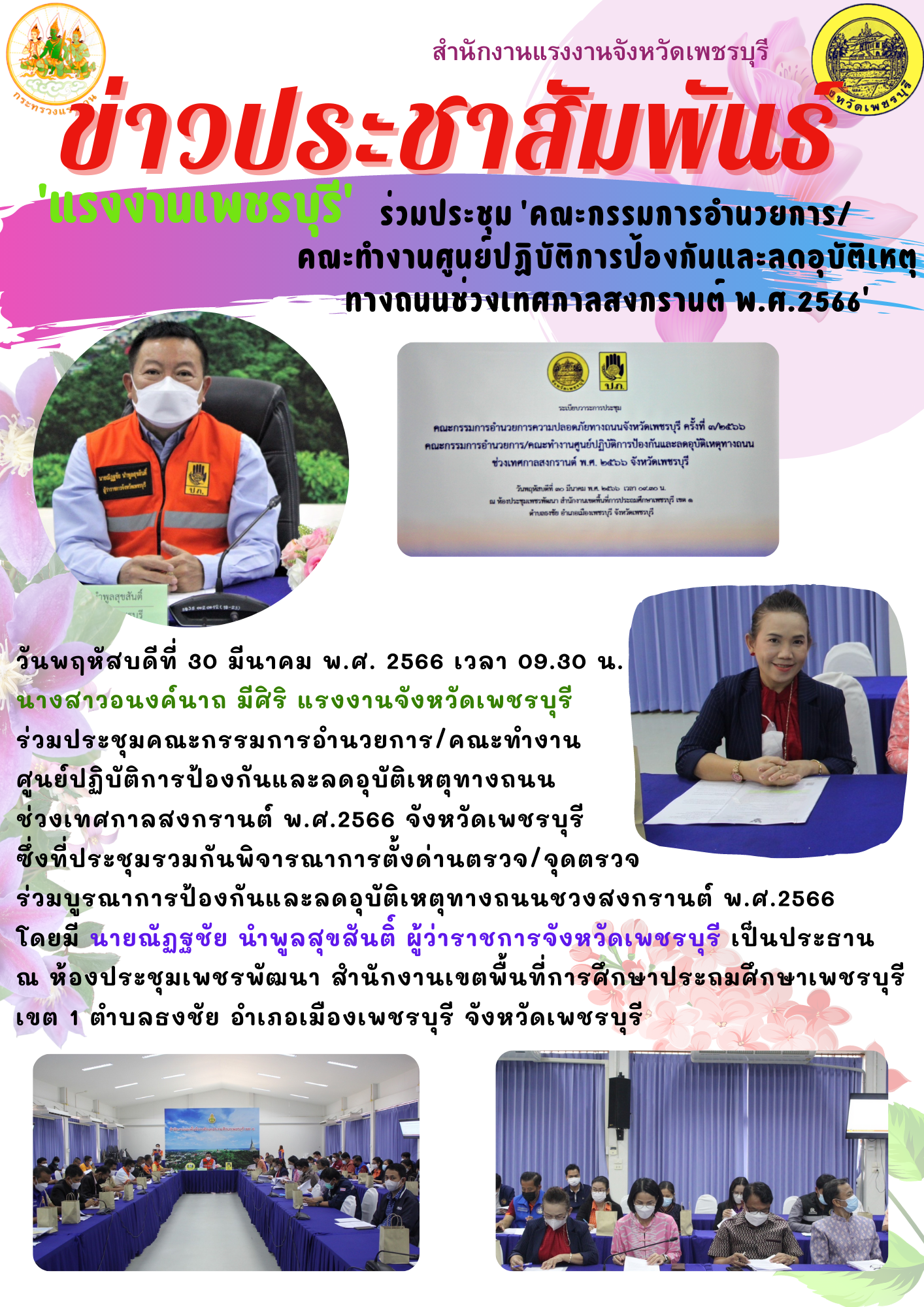 ‘แรงงานเพชรบุรี’ ร่วมประชุม ‘คณะกรรมการอำนวยการ/คณะทำงานศูนย์ปฏิบัติการป้องกันและลดอุบัติเหตุทางถนนช่วงเทศกาลสงกรานต์ พ.ศ.2566’