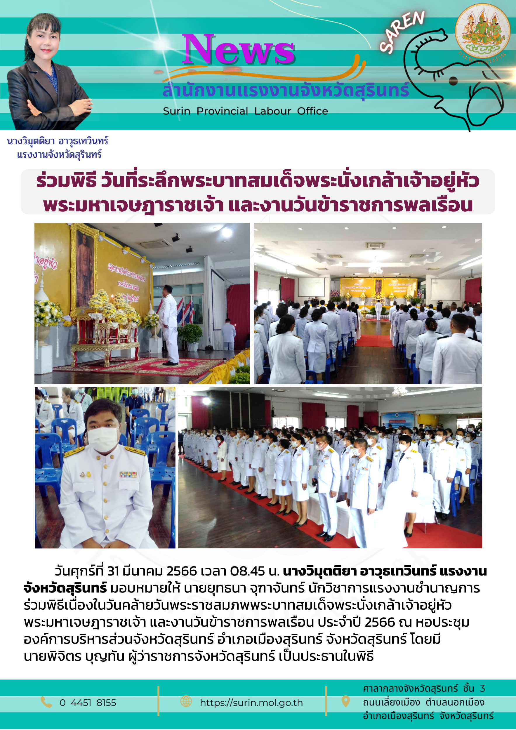 สรจ.สุรินทร์ ร่วมพิธี วันที่ระลึกพระบาทสมเด็จพระนั่งเกล้าเจ้าอยู่หัว พระมหาเจษฎาราชเจ้า และงานวันข้าราชการพลเรือน