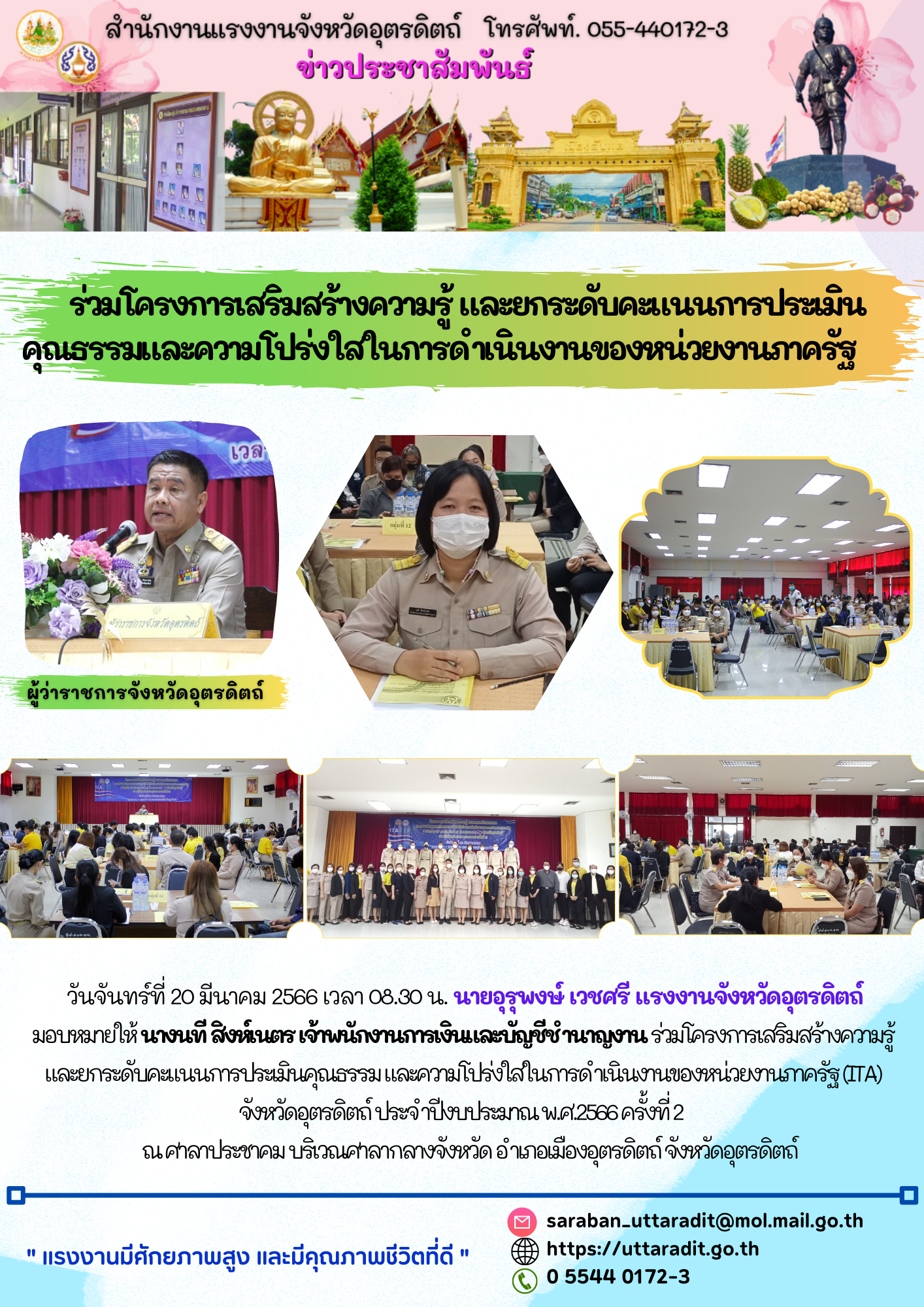 สรจ.อต. ร่วมโครงการเสริมสร้างความรู้ และยกระดับคะแนนการประเมินคุณธรรม และความโปร่งใสในการดำเนินงานของหน่วยงานภาครัฐ (ITA) จังหวัดอุตรดิตถ์ ประจำปีงบประมาณ พ.ศ.2566 ครั้งที่ 2