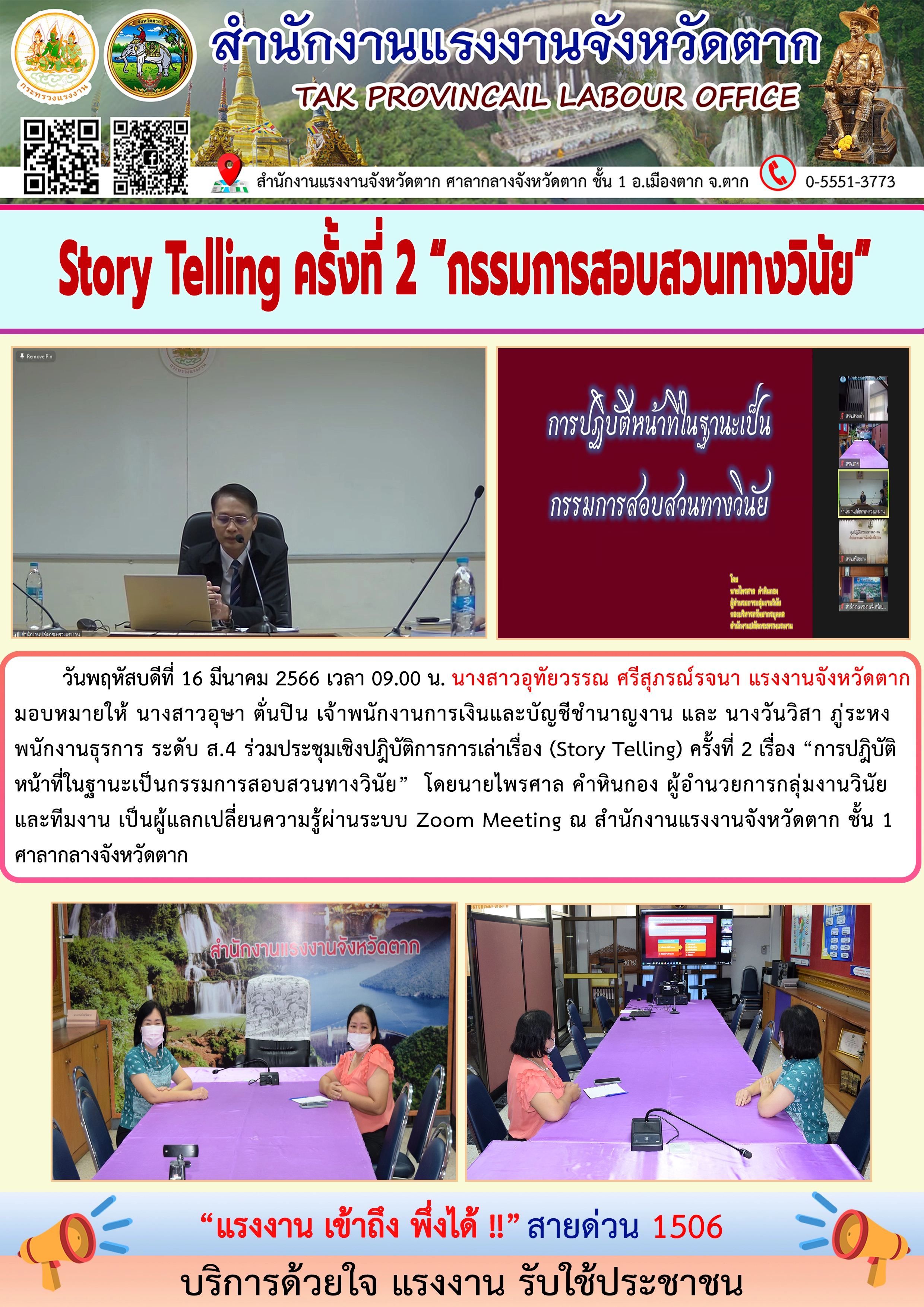 สรจ.ตาก Story Telling ครั้งที่ 2 “กรรมการสอบสวนทางวินัย”