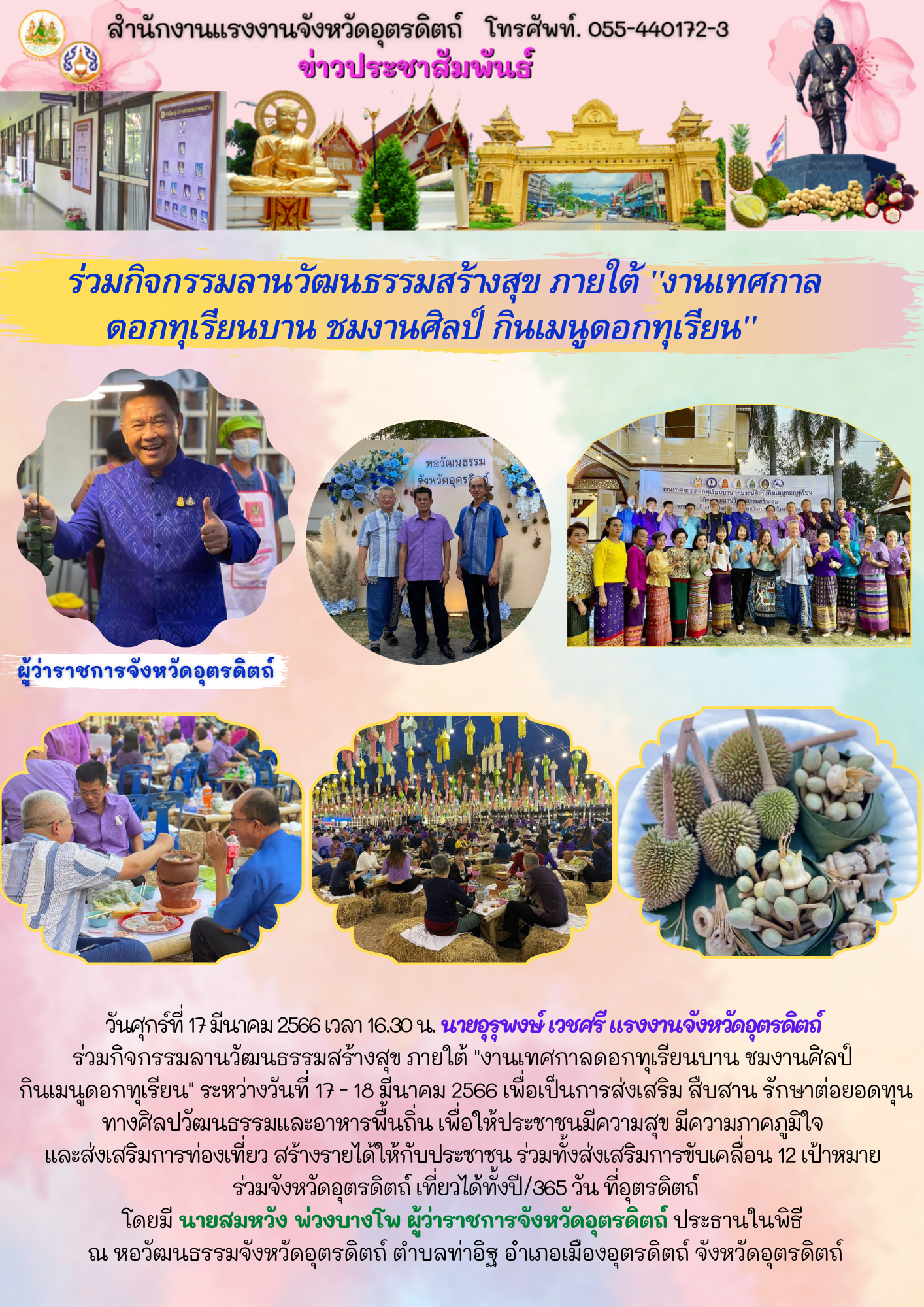 สรจ.อต. ร่วมกิจกรรมลานวัฒนธรรมสร้างสุข ภายใต้ “งานเทศกาล ดอกทุเรียนบาน ชมงานศิลป์ กินเมนูดอกทุเรียน”