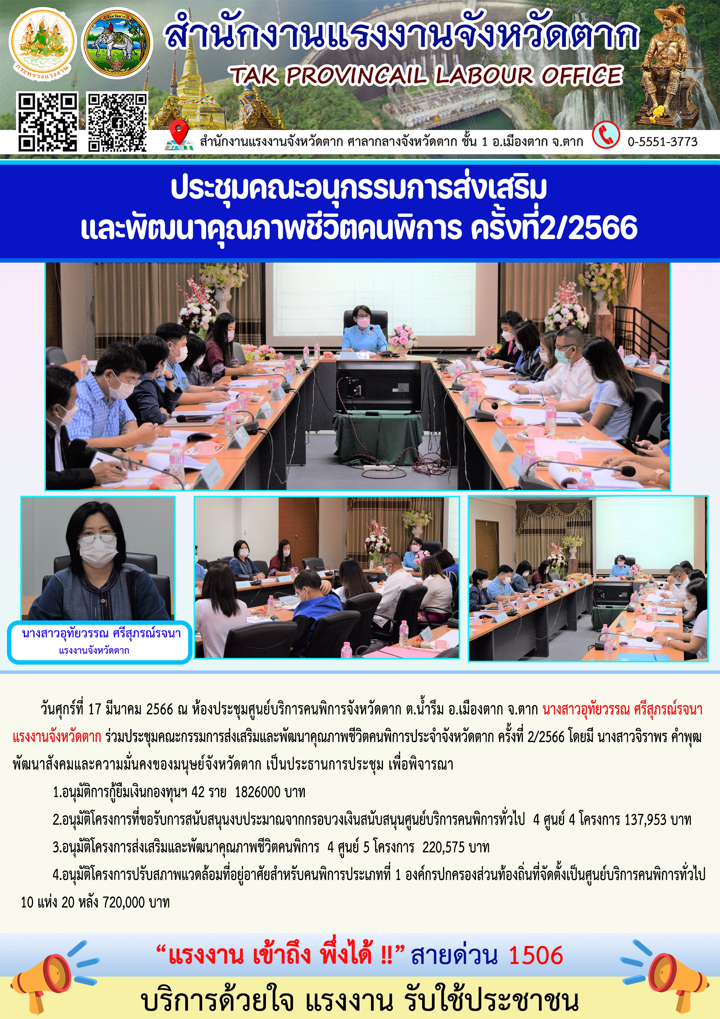 สรจ.ตาก ประชุมคณะอนุกรรมการส่งเสริมและพัฒนาคุณภาพชีวิตคนพิการ ครั้งที่2/2566