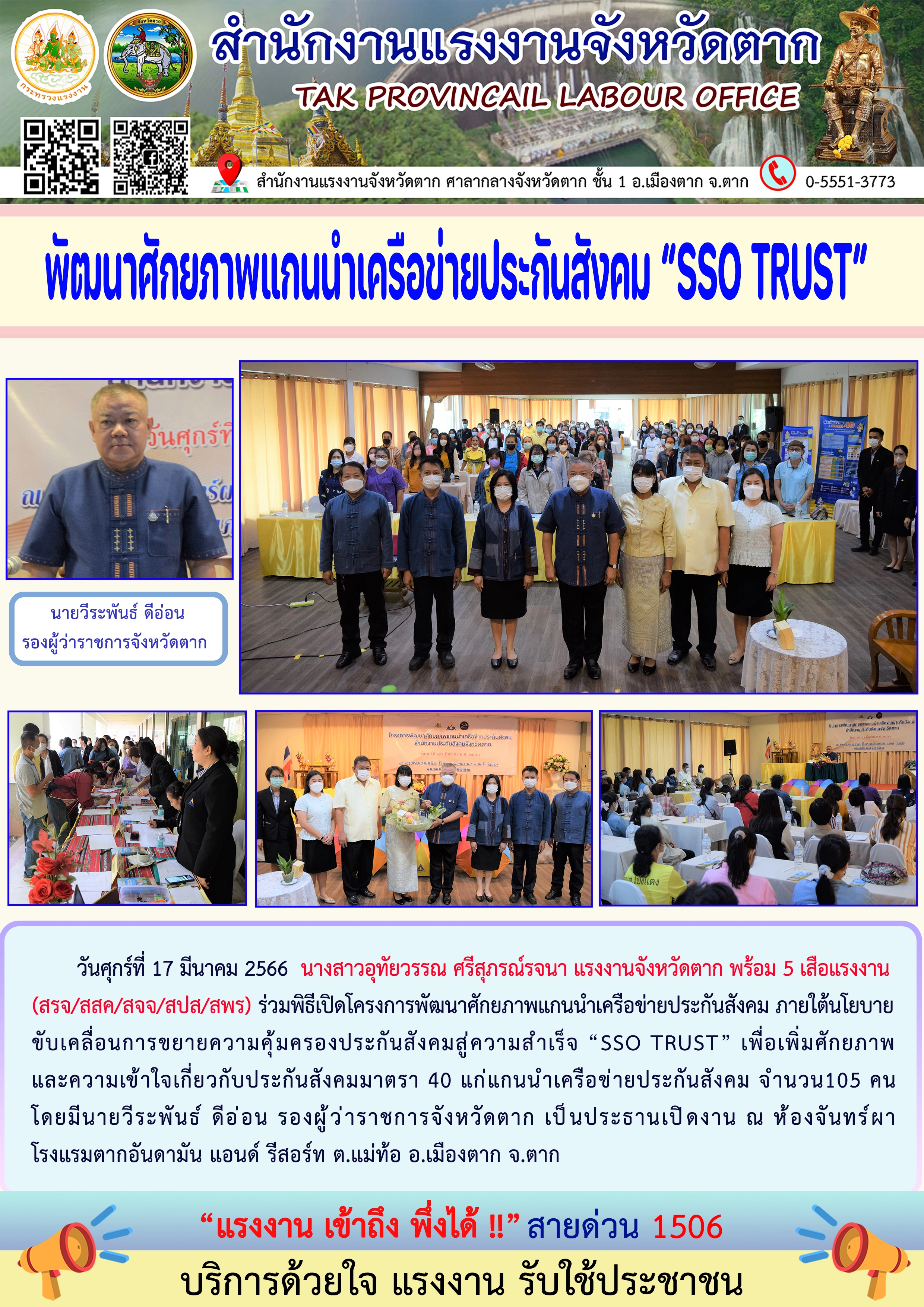 สรจ.ตาก พัฒนาศักยภาพแกนนำเครือข่ายประกันสังคม “SSO TRUST”