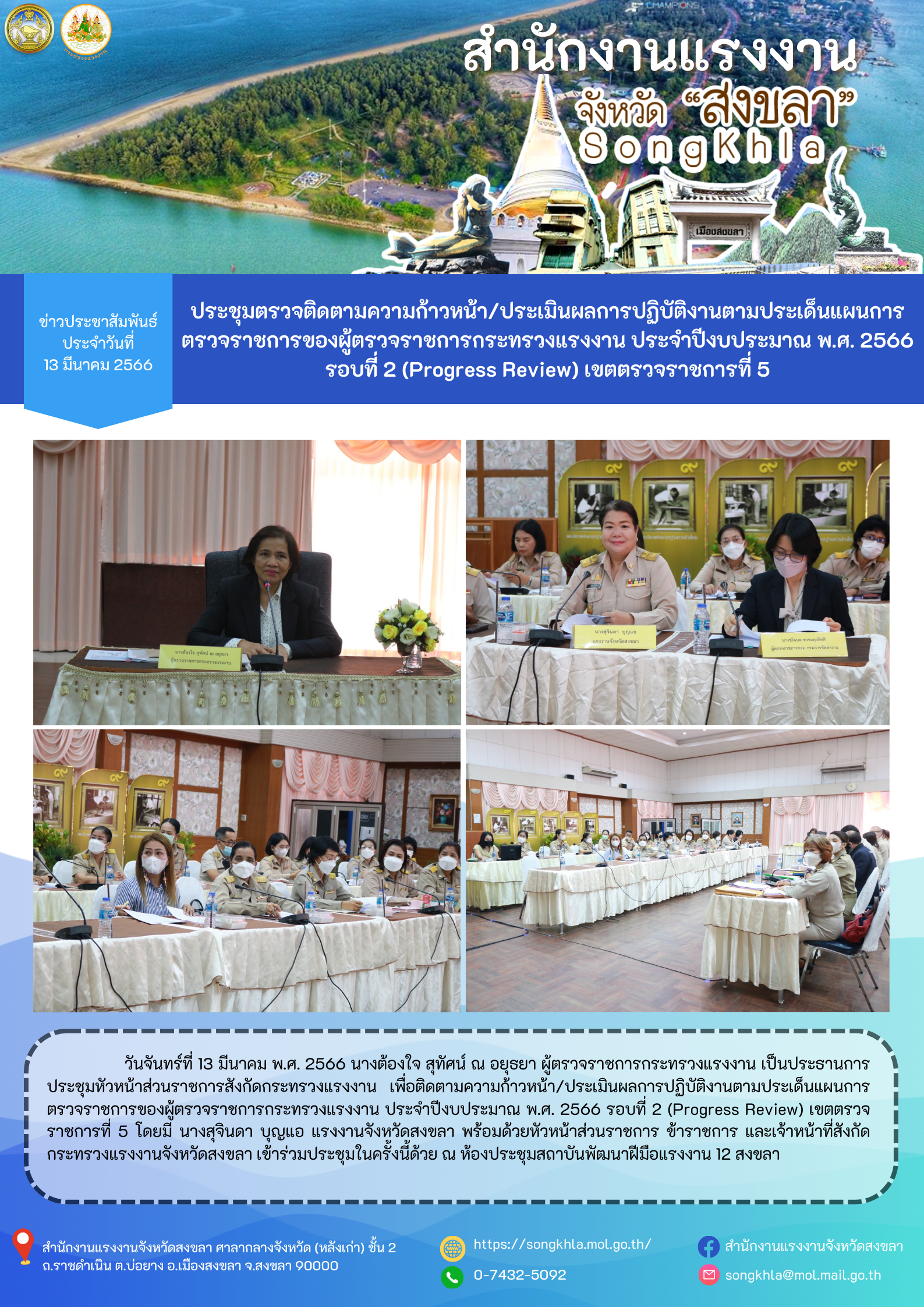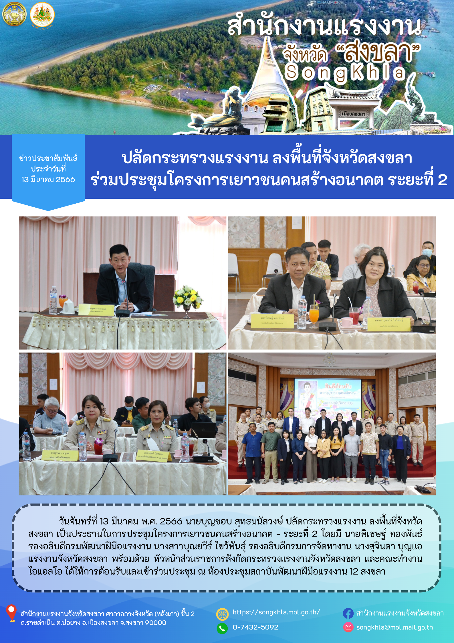 นายบุญชอบ สุทธมนัสวงษ์ ปลัดกระทรวงแรงงาน ลงพื้นที่จังหวัดสงขลา เป็นประธานในการประชุมโครงการเยาวชนคนสร้างอนาคต-ระยะที่ 2