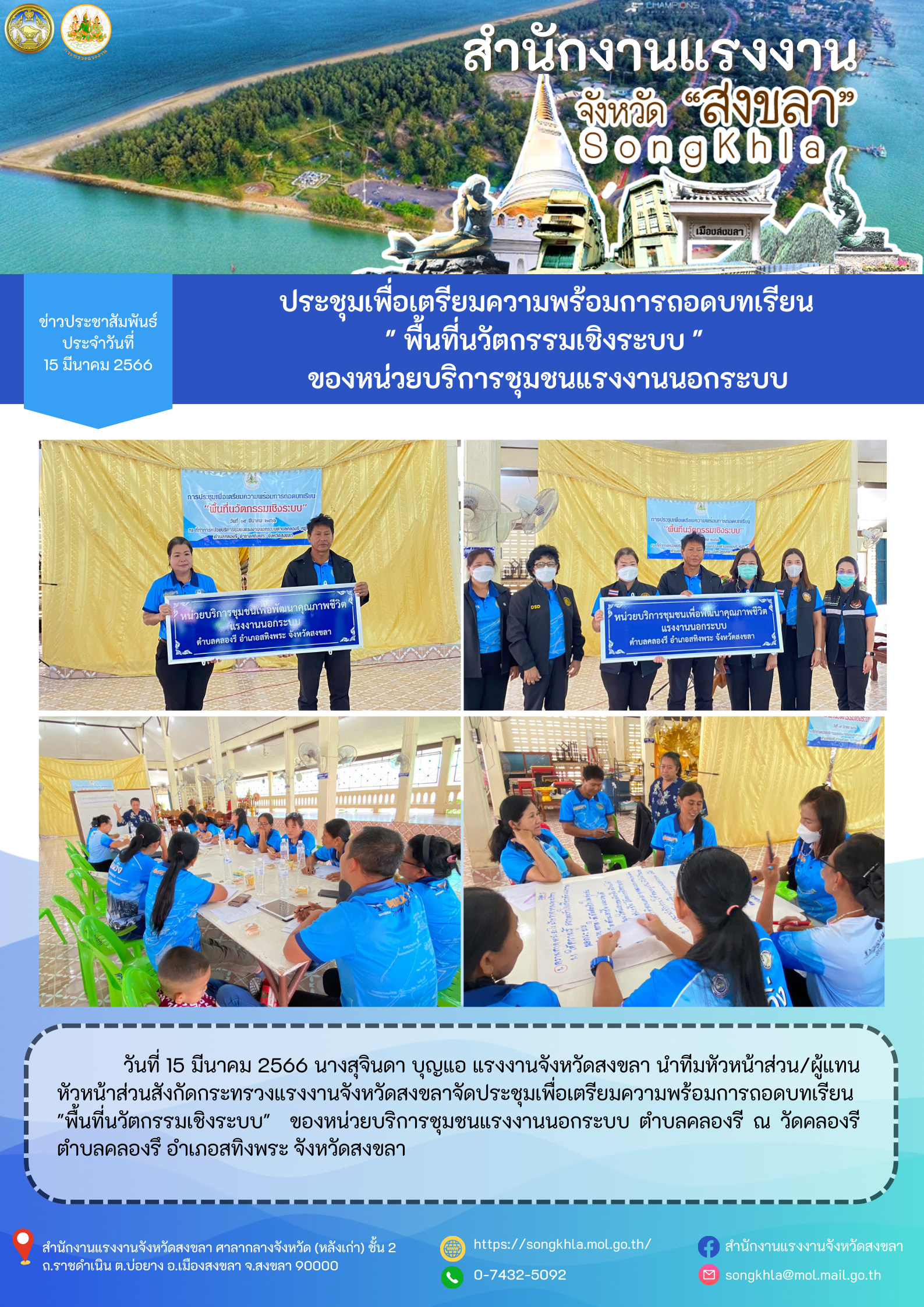 สรจ.สงขลา ประชุมเพื่อเตรียมความพร้อมการถอดบทเรียน “พื้นที่นวัตกรรมเชิงระบบ” ของหน่วยบริการชุมชนแรงงานนอกระบบ