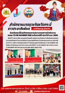 สรจ.กระบี่ ร่วมกิจกรรมการประกวดผลการดำเนินงาน ชมรม TO BE NUMBER ONE ระดับภาคใต้ ประจำปี พ.ศ. 2566
