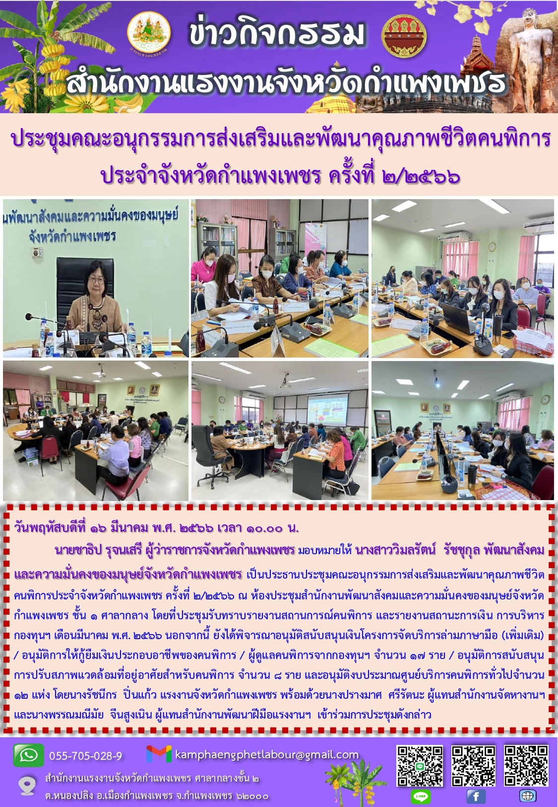 ประชุมคณะอนุกรรมการส่งเสริมและพัฒนาคุณภาพชีวิตคนพิการประจำจังหวัดกำแพงเพชร ครั้งที่ 2/2566