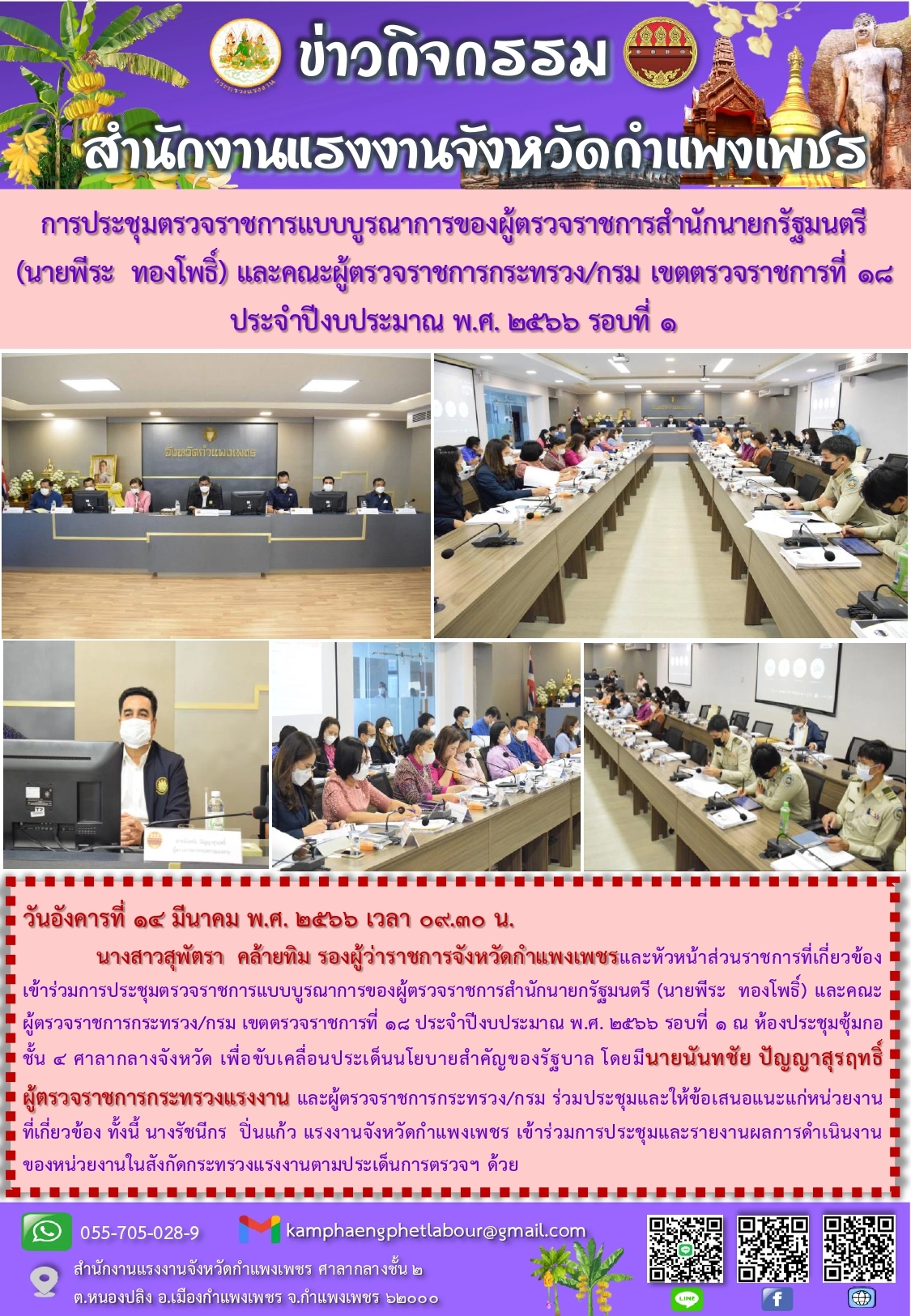สรจ.กำแพงเพชร การประชุมตรวจราชการแบบบูรณาการของผู้ตรวจราชการสำนักนายกรัฐมนตรี (นายพีระ ทองโพธิ์) และคณะผู้ตรวจราชการกระทรวง/กรม เขตตรวจราชการที่ 18 ประจำปีงบประมาณ พ.ศ. 2566 รอบที่ 1