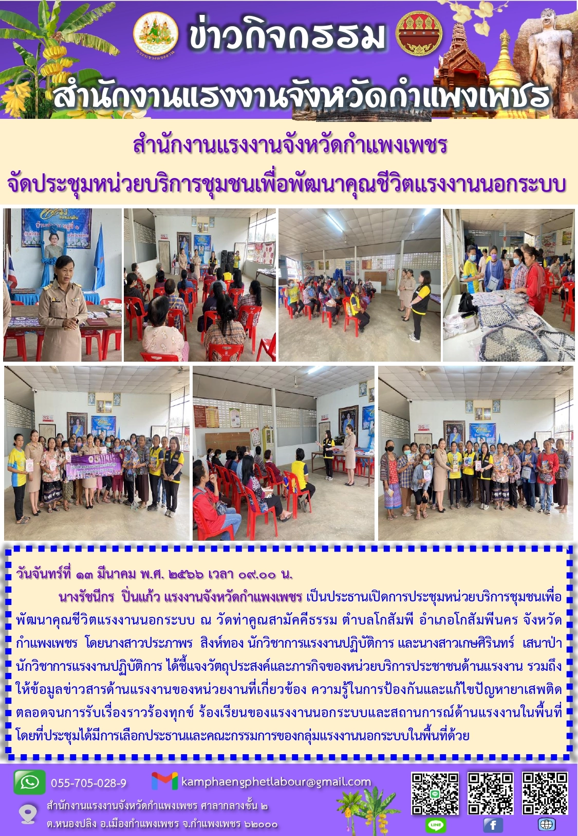 สรจ.กำแพงเพชร จัดประชุมหน่วยบริการชุมชนเพื่อพัฒนาคุณชีวิตแรงงานนอกระบบ