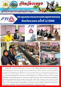 แรงงานจังหวัดระยอง ร่วมประชุมคณะกรรมการสภาอุตสาหกรรม จังหวัดระยอง ครั้งที่ 2/2566