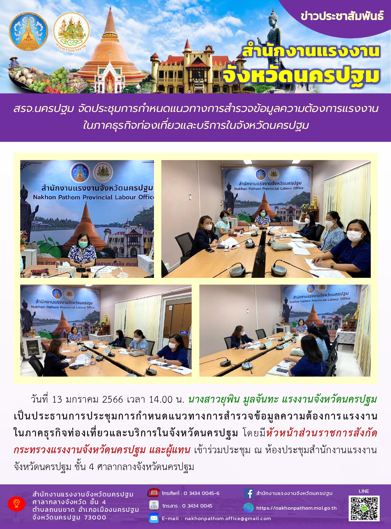 สรจ.นครปฐม จัดประชุมการกำหนดแนวทางการสำรวจข้อมูลความต้องการแรงงานในภาคธุรกิจท่องเที่ยวและบริการในจังหวัดนครปฐม
