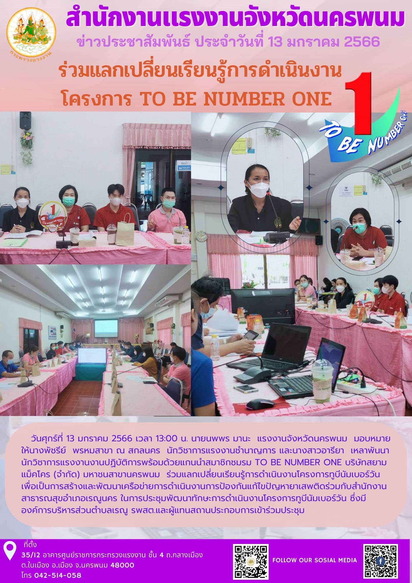 สรจ.นครพนม ร่วมแลกเปลี่ยนเรียนรู้การดำเนินงาน โครงการ TO BE NUMBER ONE