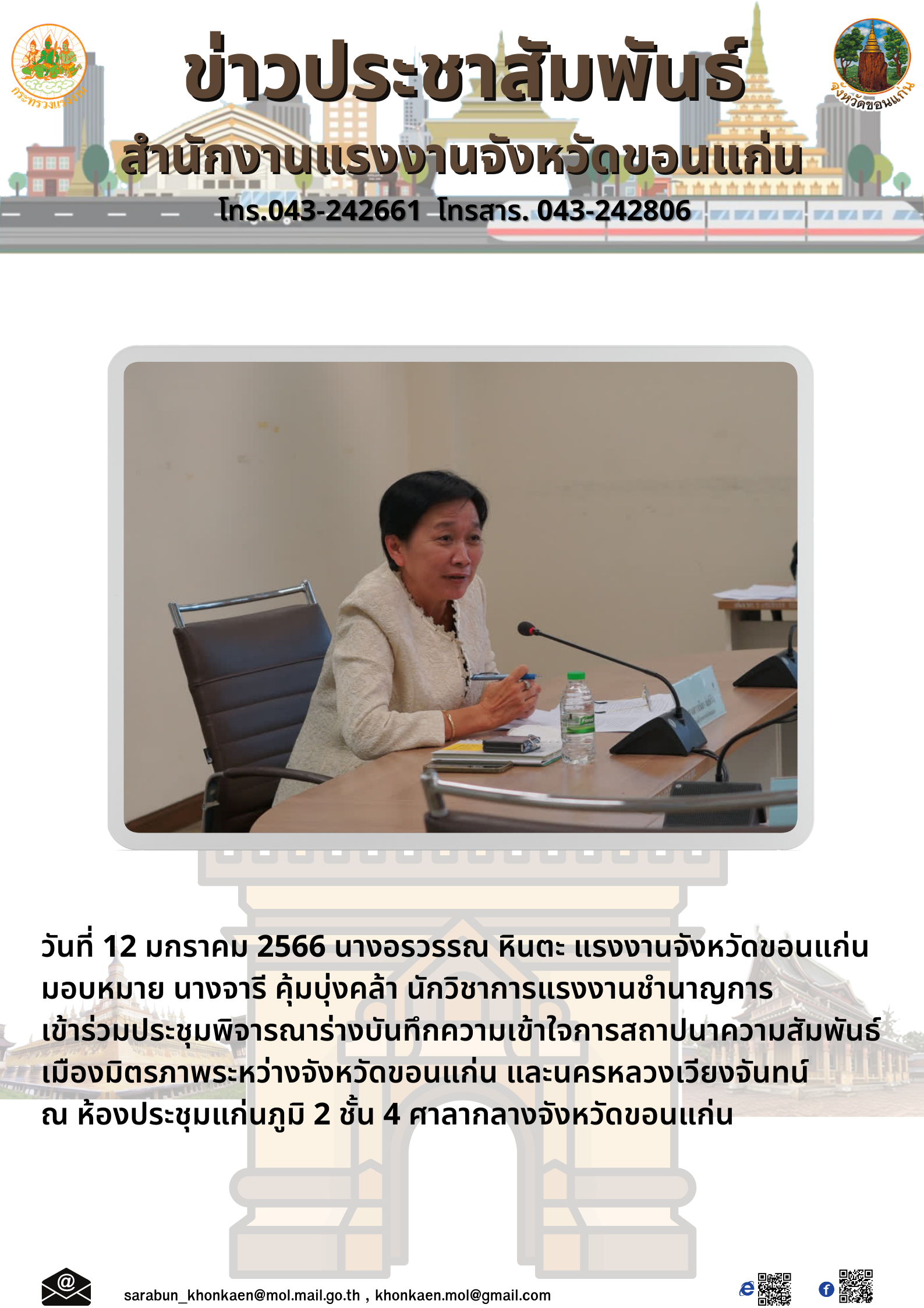 สรจ.ขก ร่วมประชุมพิจารณาร่างบันทึกความเข้าใจการสถาปนาความสัมพันธ์เมืองมิตรภาพระหว่างจังหวัดขอนแก่น และนครหลวงเวียงจันทน์