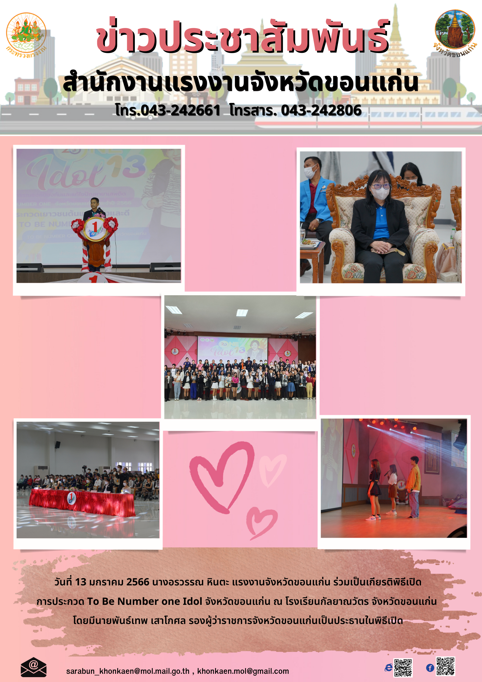 สรจ.ขอนแก่น ร่วมเป็นเกียรติพิธีเปิด การประกวด To Be Number one Idol จังหวัดขอนแก่น ณ โรงเรียนกัลยาณวัตร จังหวัดขอนแก่น