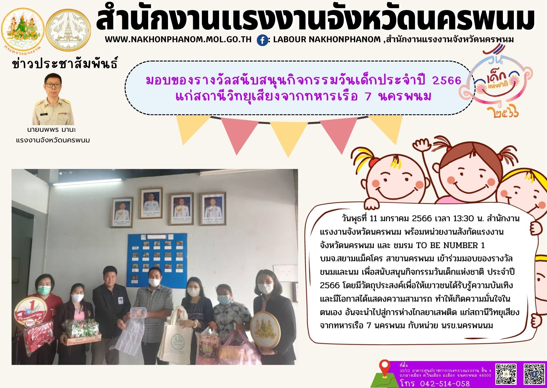 สรจ.นครพนม มอบของรางวัลสนับสนุนกิจกรรมวันเด็กประจำปี 2566 แก่สถานีวิทยุเสียงจากทหารเรือ 7 นครพนม