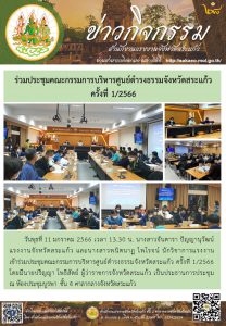 สรจ.สระแก้ว และนางสาวพนิตนาฏ ไพโรจน์ นักวิชาการแรงงาน เข้าร่วมประชุมคณะกรรมการบริหารศูนย์ดำรงธรรมจังหวัดสระแก้ว ครั้งที่ 1/2566โดยมีนายปริญญา โพธิสัตย์ ผู้ว่าราชการจังหวัดสระแก้ว เป็นประธานการประชุม ณ ห้องประชุมบูรพา ชั้น 4 ศาลากลางจังหวัดสระแก้ว