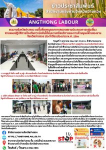 แรงงานจังหวัดอ่างทอง ลงพื้นที่ออกบูรณาการตรวจสถานประกอบการกลุ่มเสี่ยง ตามแผนปฏิบัติการป้องกันการบังคับใช้แรงงานหรือบริการและการค้ามนุษย์ด้านแรงงานจังหวัดอ่างทอง ประจำปีงบประมาณ พ.ศ. 2566