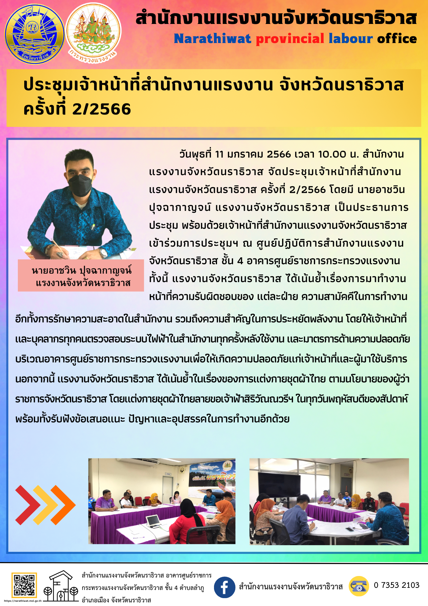 ประชุมเจ้าหน้าที่สำนักงานแรงงาน จังหวัดนราธิวาส ครั้งที่ 2/2566