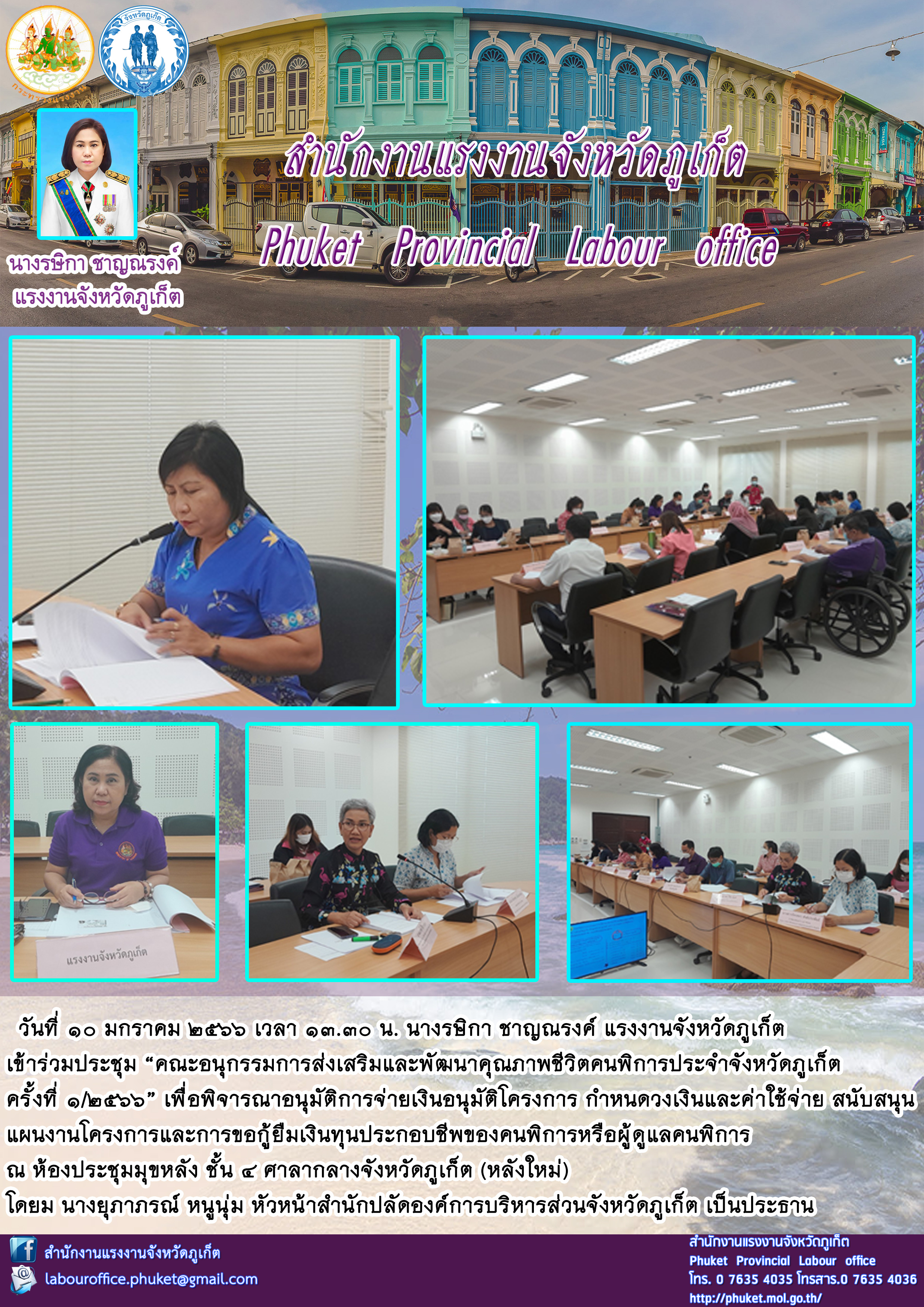 สรจ.ภูเก็ต เข้าร่วมประชุม “คณะอนุกรรมการส่งเสริมและพัฒนาคุณภาพชีวิตคนพิการประจำจังหวัดภูเก็ต ครั้งที่ 1/2566”