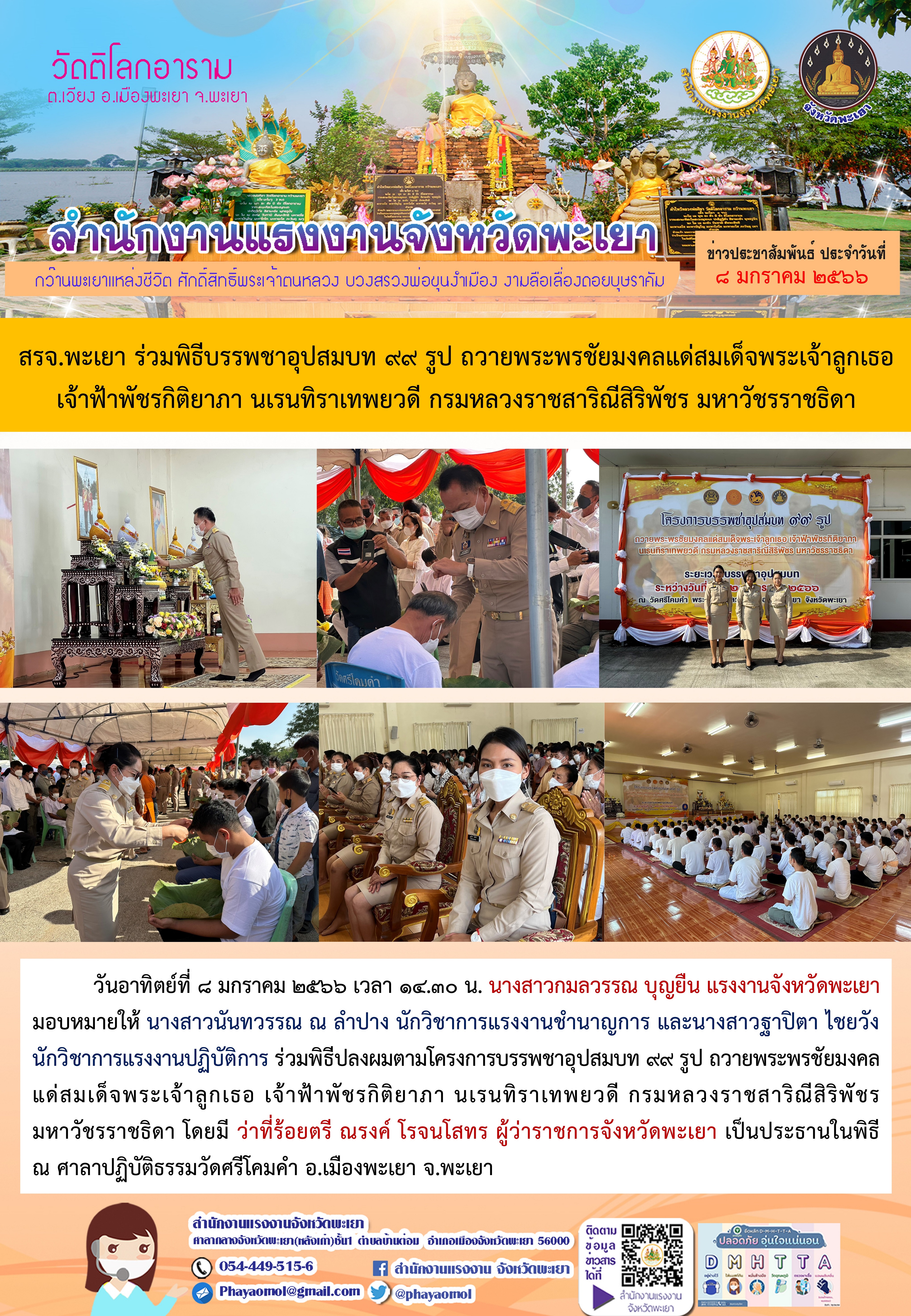 สรจ.พะเยา ร่วมพิธีบรรพชาอุปสมบท ๙๙ รูป ถวายพระพรชัยมงคลแด่สมเด็จพระเจ้าลูกเธอ เจ้าฟ้าพัชรกิติยาภา นเรนทิราเทพยวดี กรมหลวงราชสาริณีสิริพัชร มหาวัชรราชธิดา